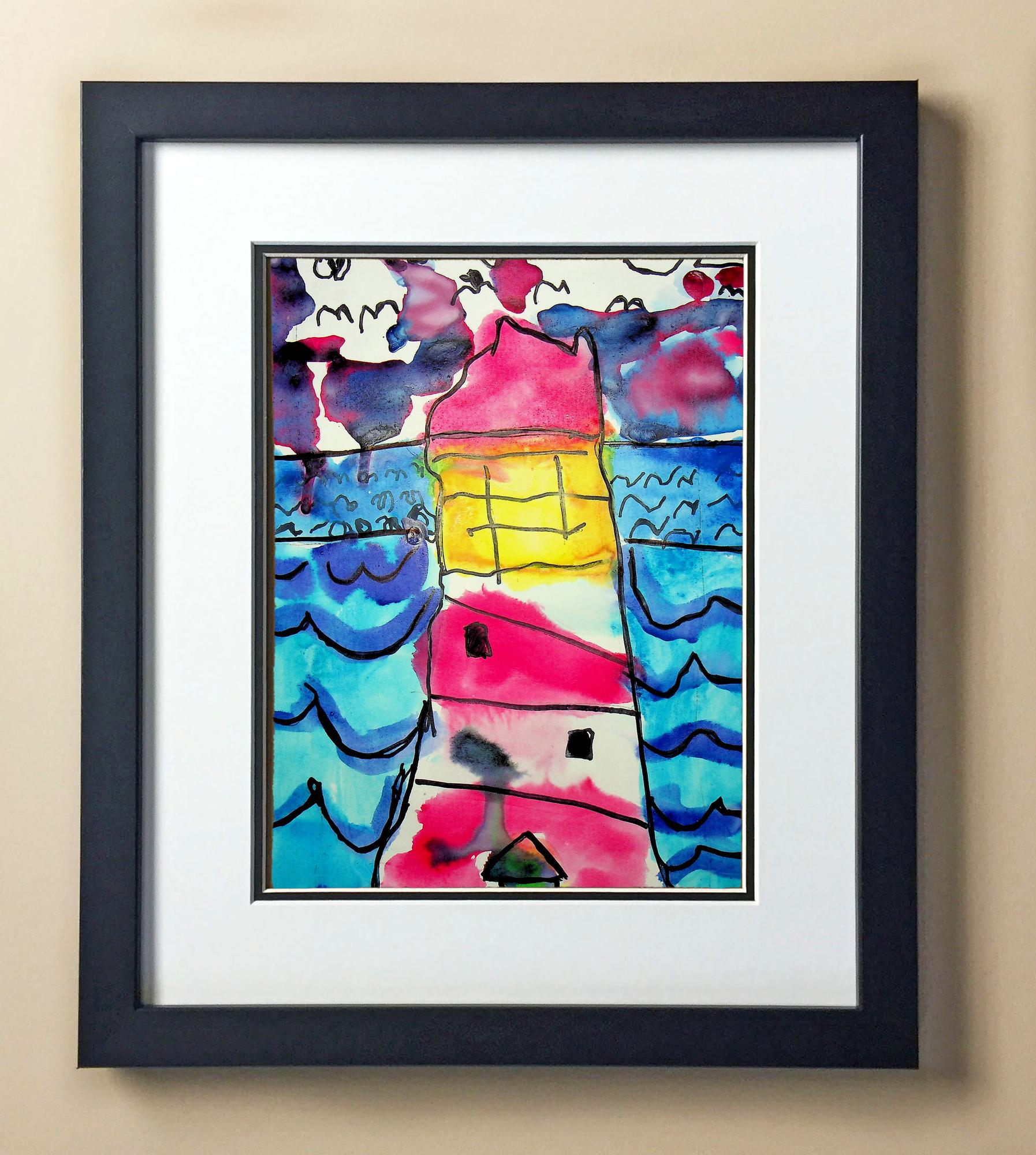 Included with the purchase is the Students Artwork, Frame, double matboard, shatter proof plexiglass, and a ready to hang backerboard with turnbuttons