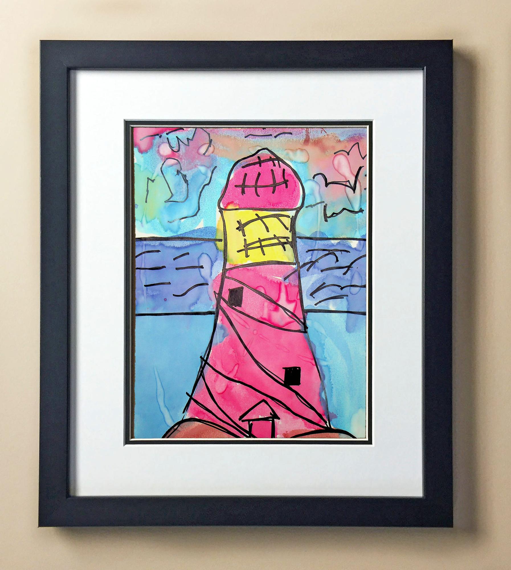 Included with the purchase is the Students Artwork, Frame, double matboard, shatter proof plexiglass, and a ready to hang backerboard with turnbuttons