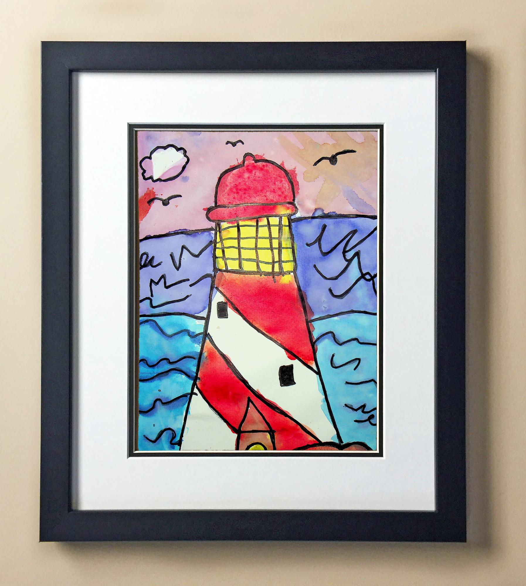 Included with the purchase is the Students Artwork, Frame, double matboard, shatter proof plexiglass, and a ready to hang backerboard with turnbuttons