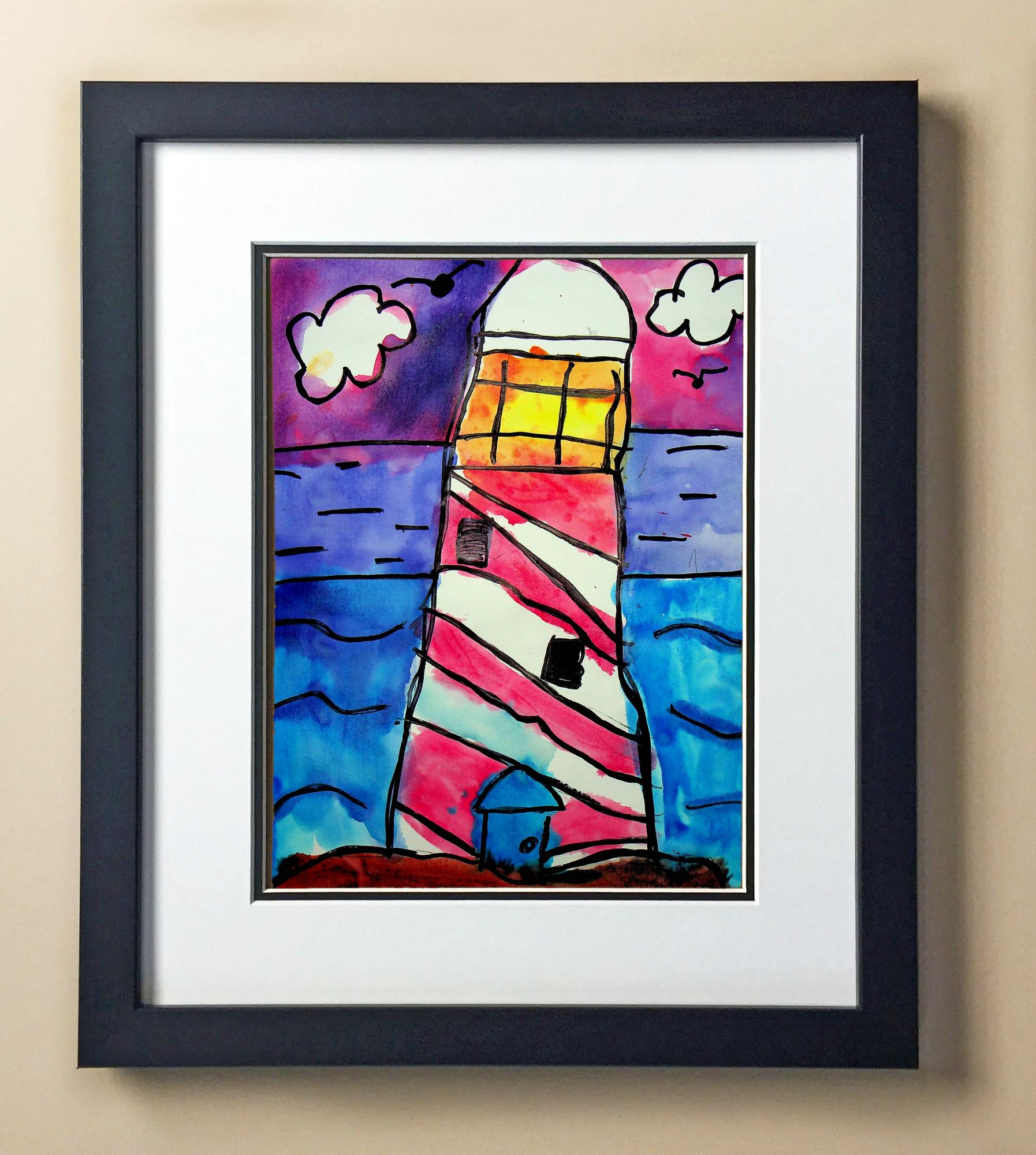 Included with the purchase is the Students Artwork, Frame, double matboard, shatter proof plexiglass, and a ready to hang backerboard with turnbuttons