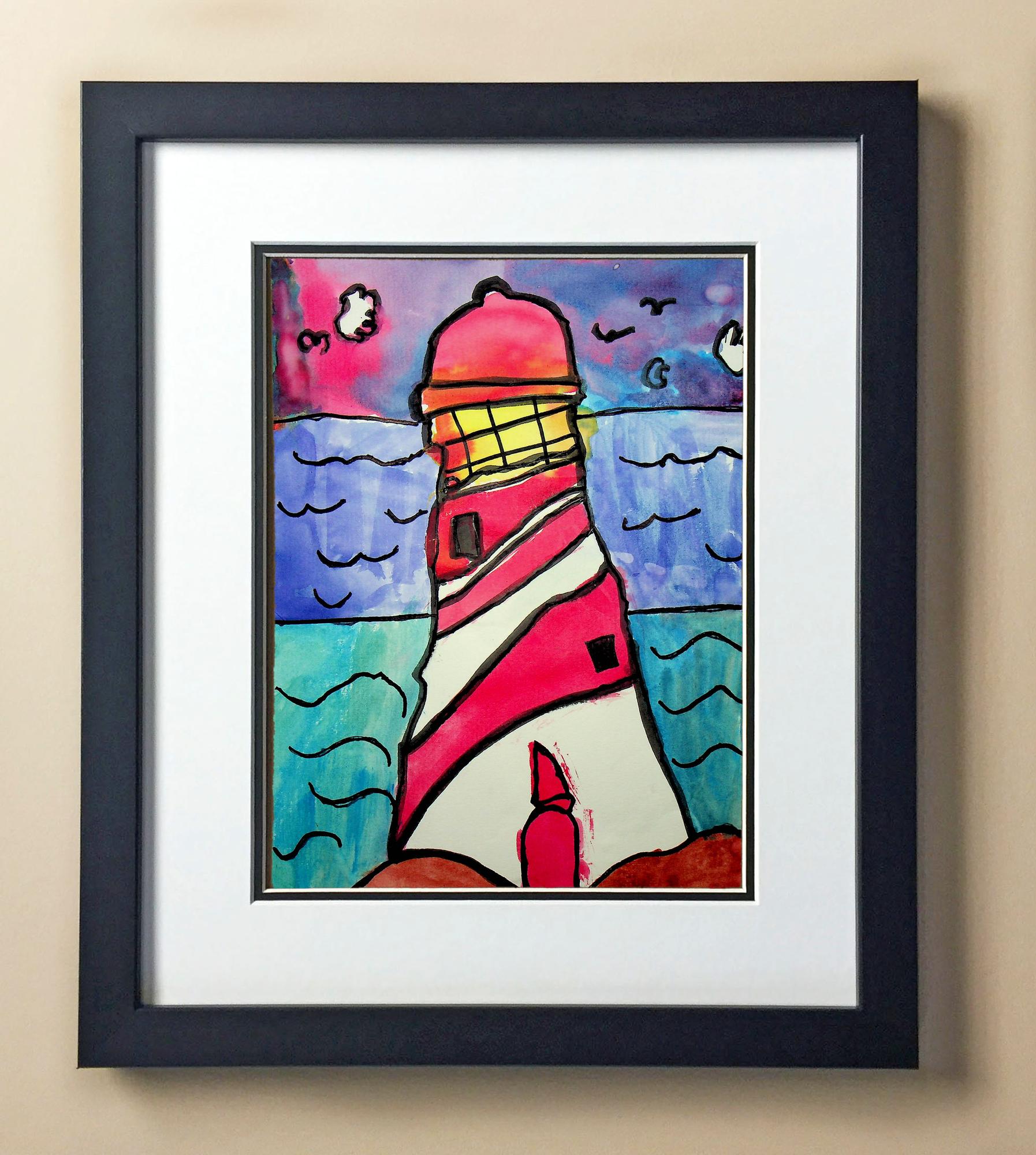 Included with the purchase is the Students Artwork, Frame, double matboard, shatter proof plexiglass, and a ready to hang backerboard with turnbuttons