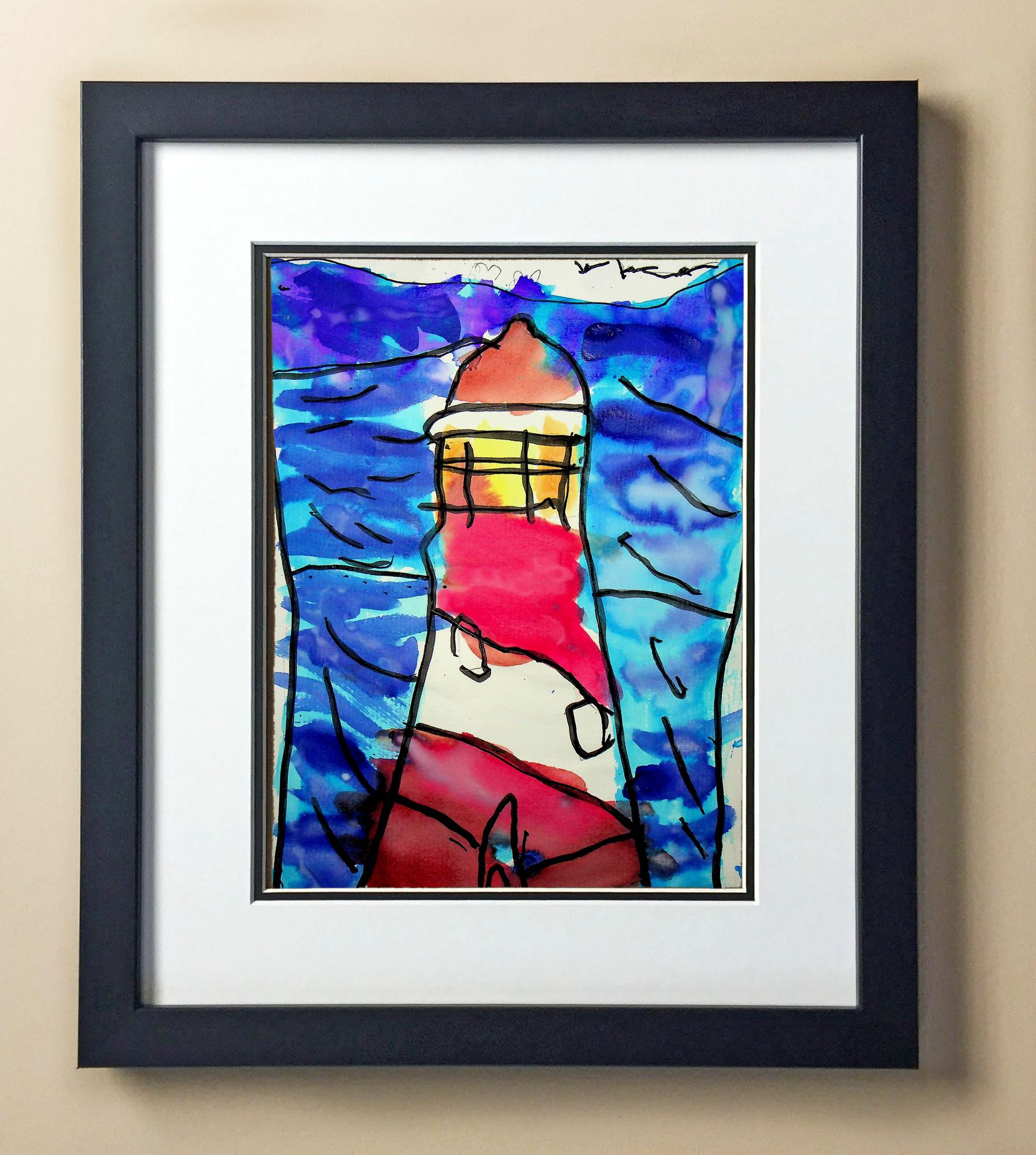 Included with the purchase is the Students Artwork, Frame, double matboard, shatter proof plexiglass, and a ready to hang backerboard with turnbuttons