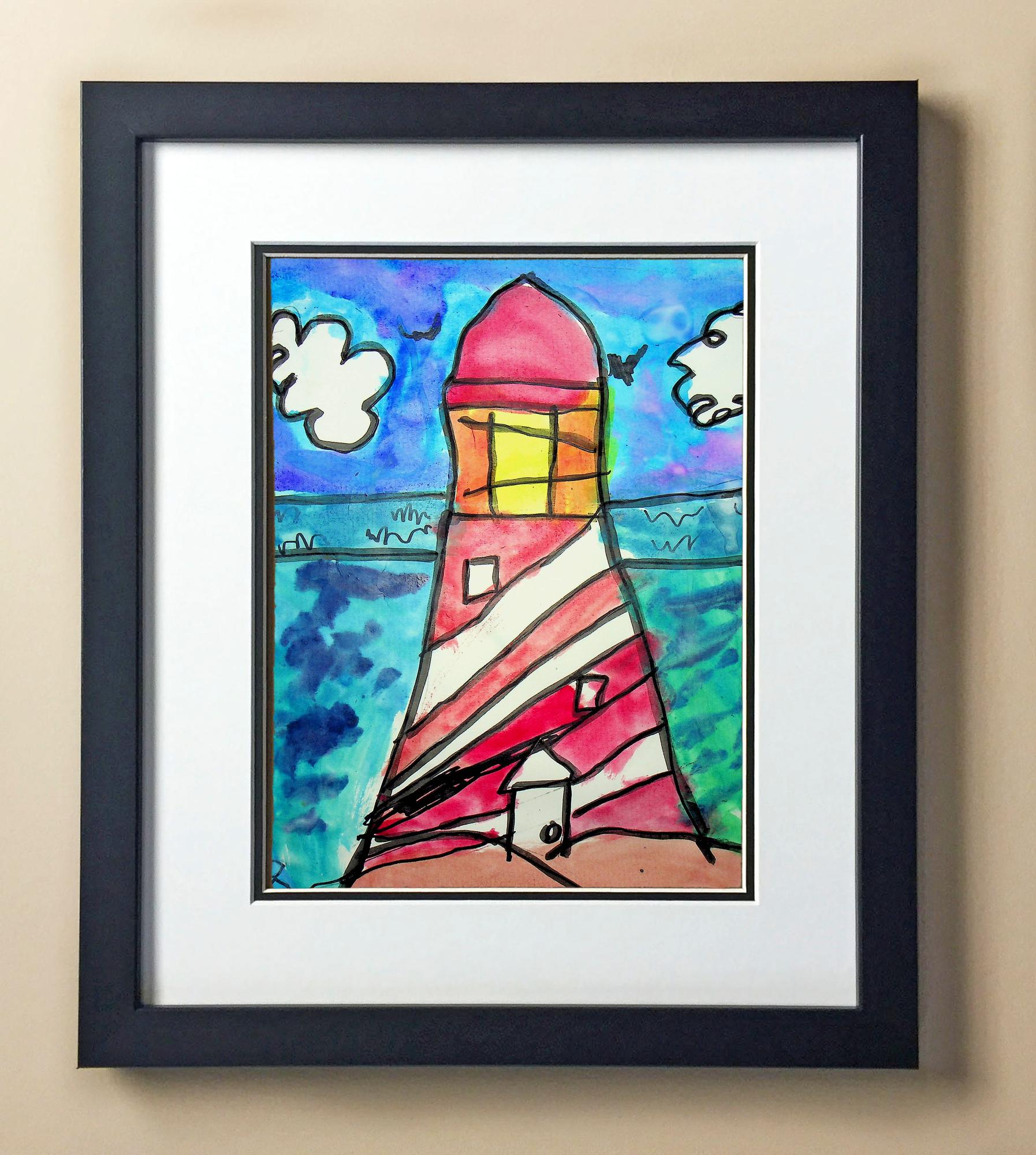 Included with the purchase is the Students Artwork, Frame, double matboard, shatter proof plexiglass, and a ready to hang backerboard with turnbuttons