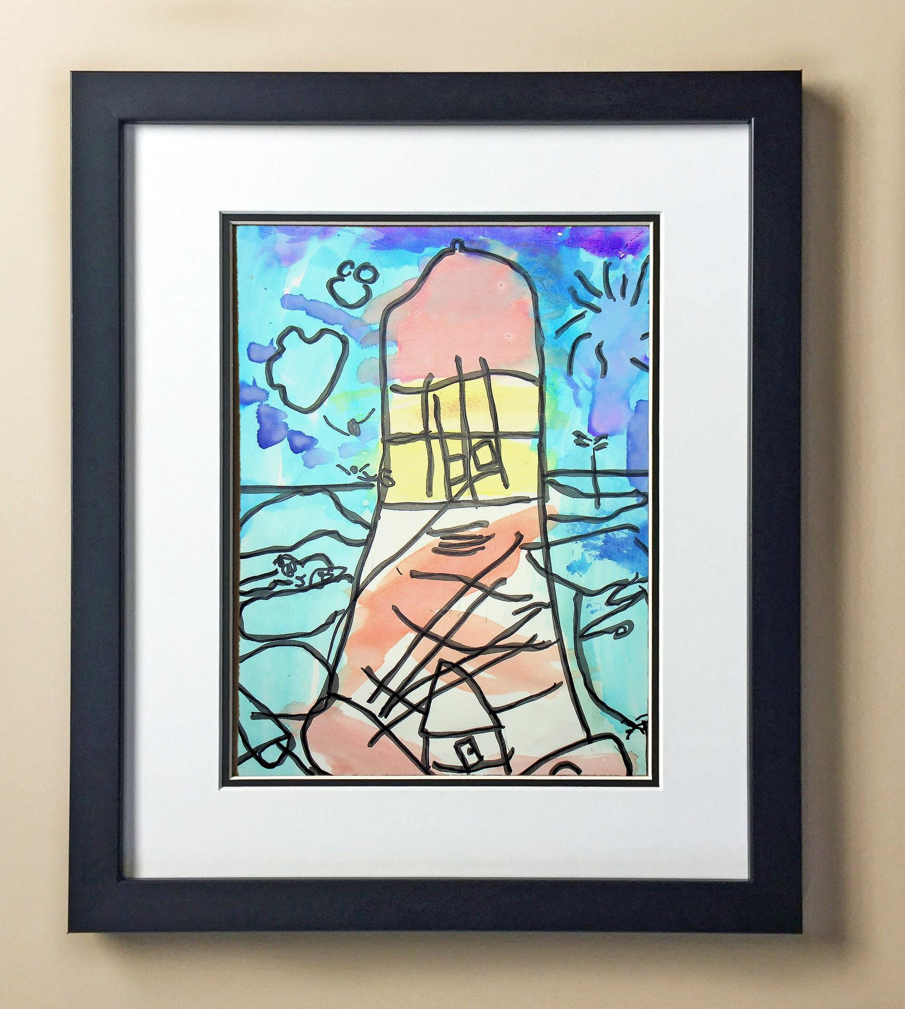 Included with the purchase is the Students Artwork, Frame, double matboard, shatter proof plexiglass, and a ready to hang backerboard with turnbuttons