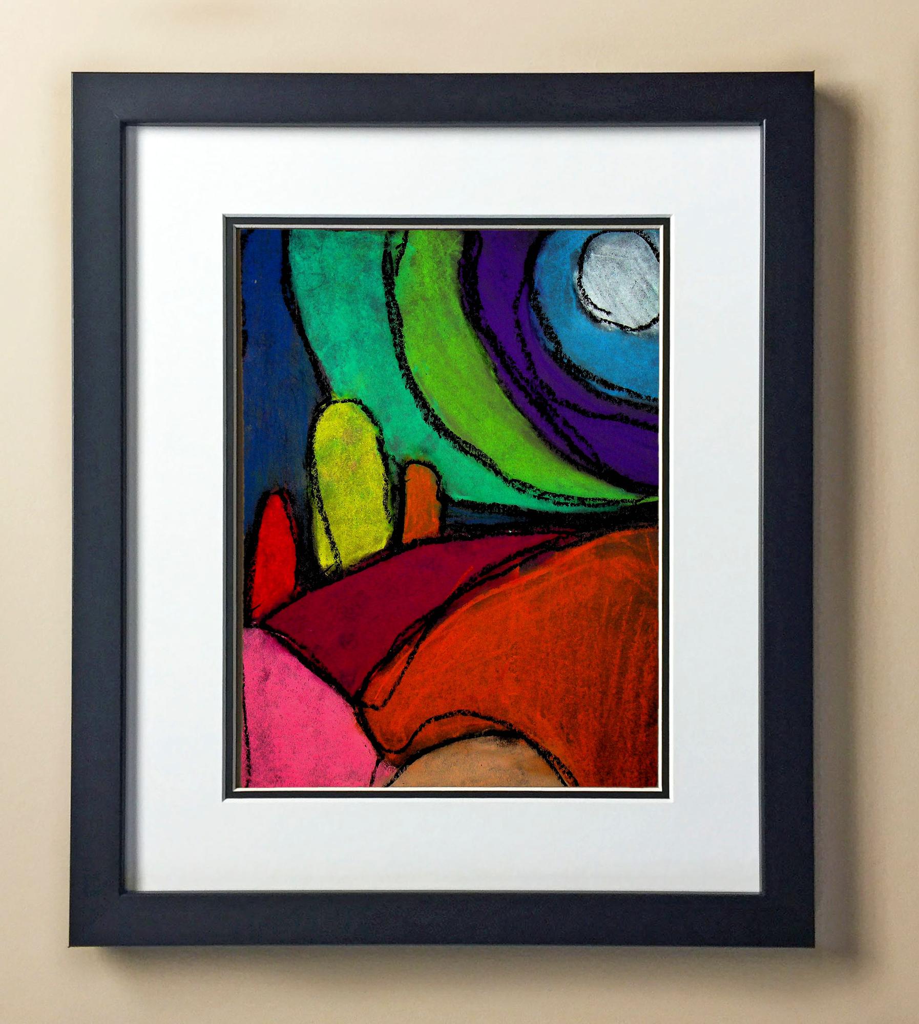 Included with the purchase is the Students Artwork, Frame, double matboard, shatter proof plexiglass, and a ready to hang backerboard with turnbuttons