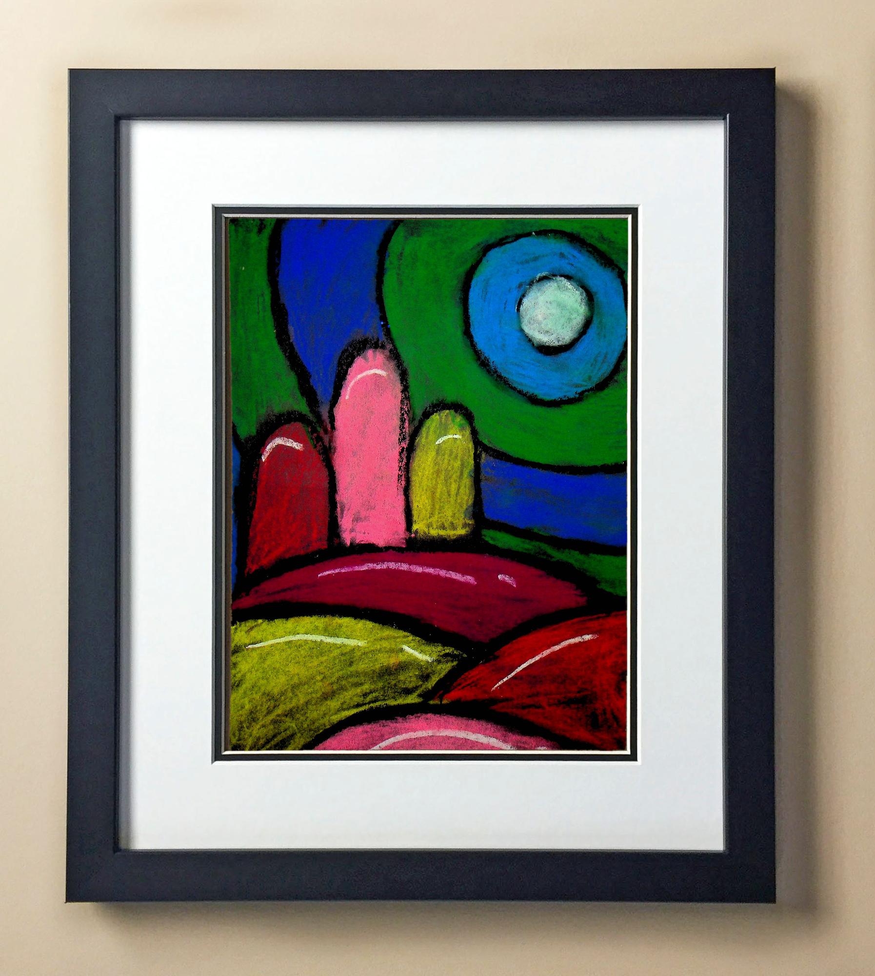 Included with the purchase is the Students Artwork, Frame, double matboard, shatter proof plexiglass, and a ready to hang backerboard with turnbuttons