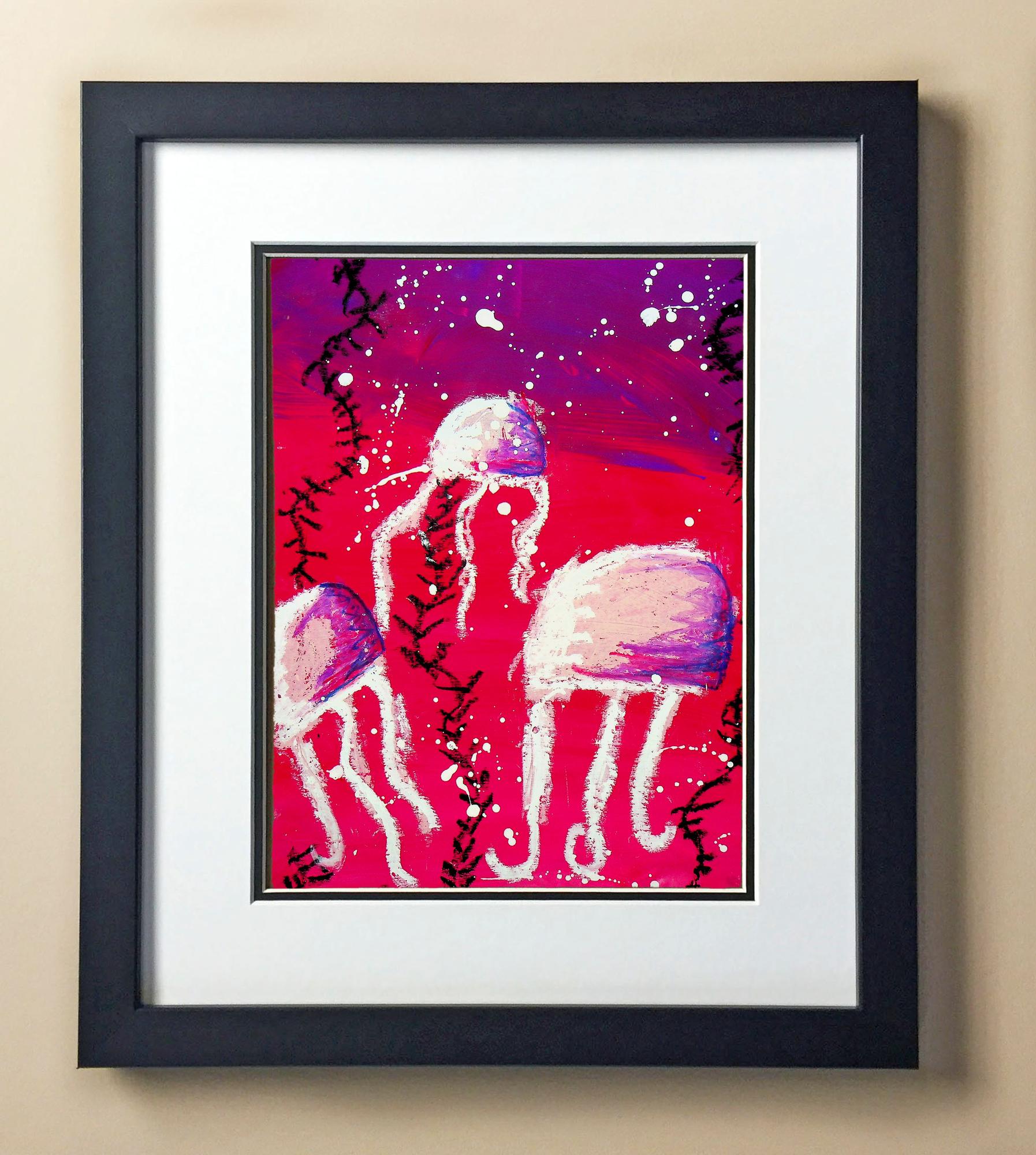 Included with the purchase is the Students Artwork, Frame, double matboard, shatter proof plexiglass, and a ready to hang backerboard with turnbuttons