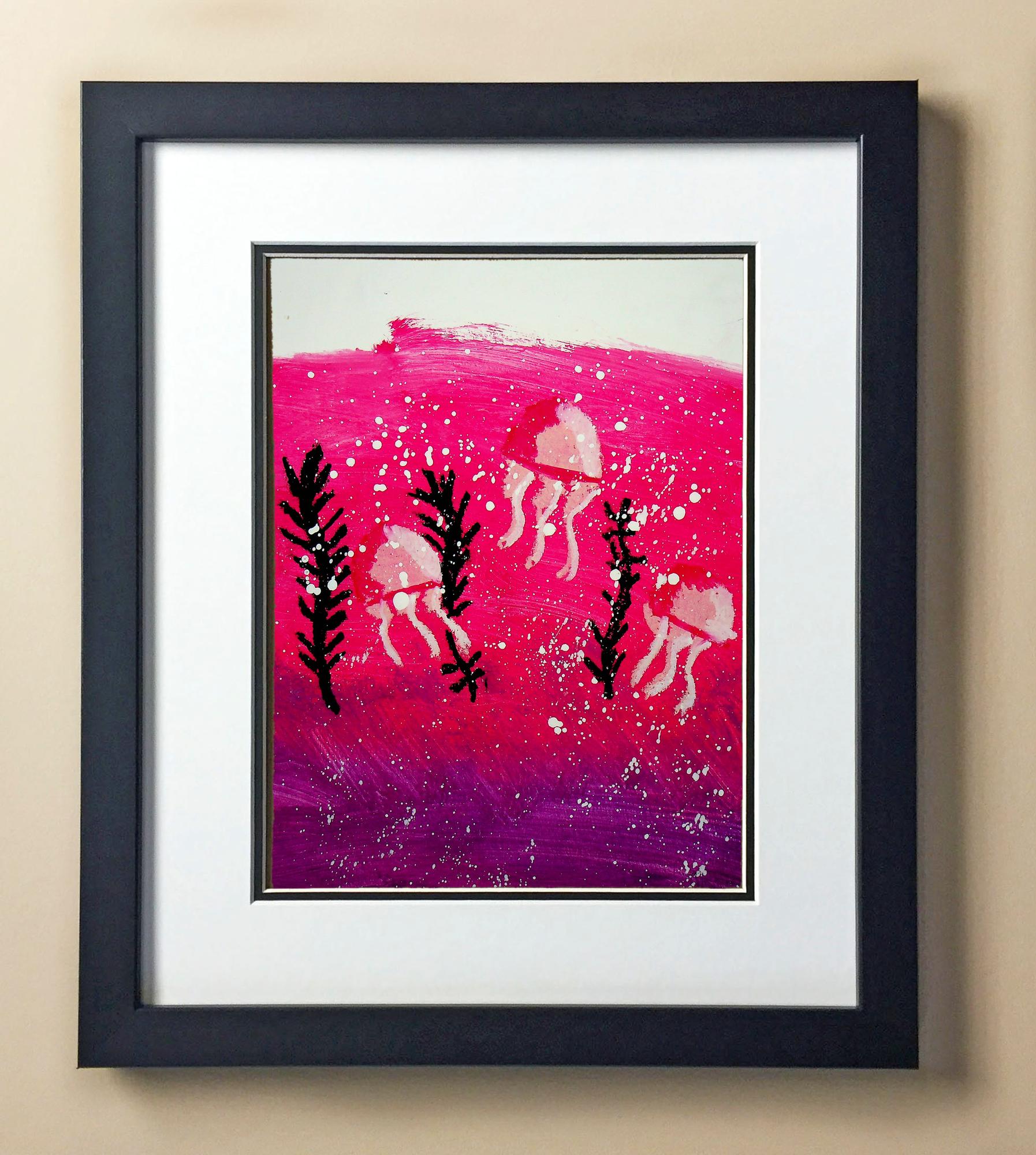 Included with the purchase is the Students Artwork, Frame, double matboard, shatter proof plexiglass, and a ready to hang backerboard with turnbuttons