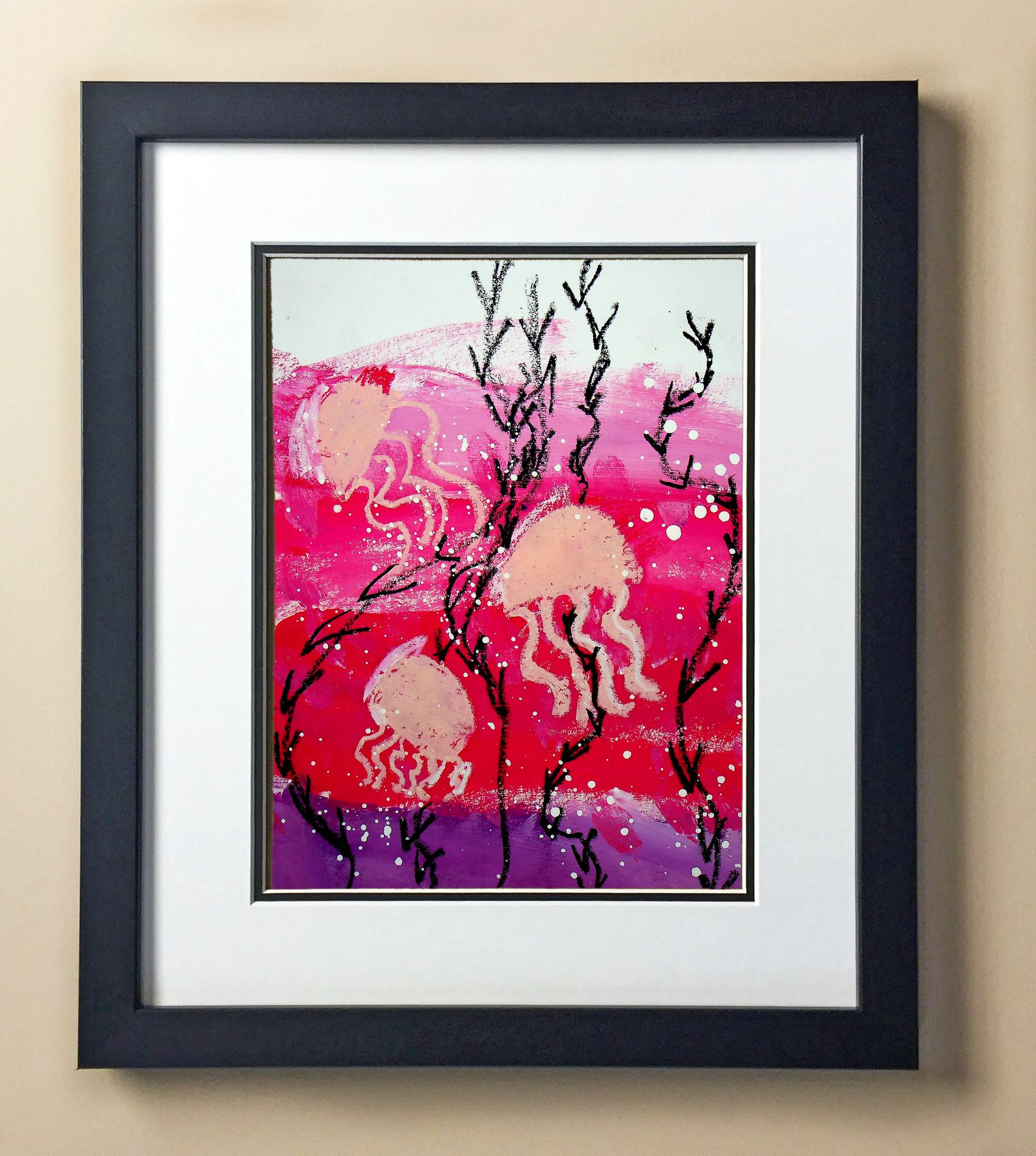 Included with the purchase is the Students Artwork, Frame, double matboard, shatter proof plexiglass, and a ready to hang backerboard with turnbuttons