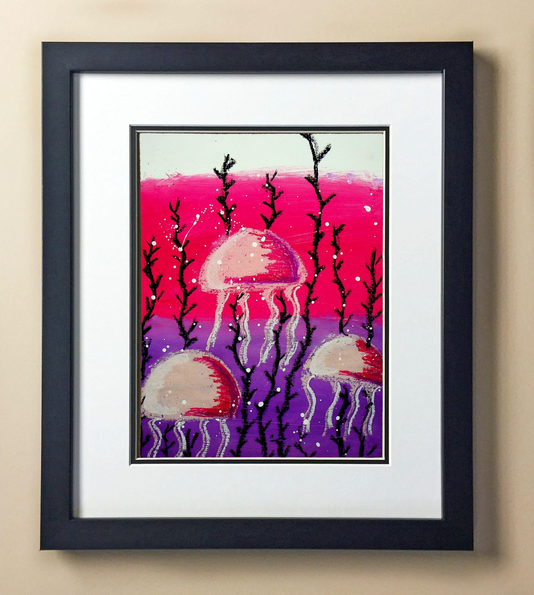 Included with the purchase is the Students Artwork, Frame, double matboard, shatter proof plexiglass, and a ready to hang backerboard with turnbuttons