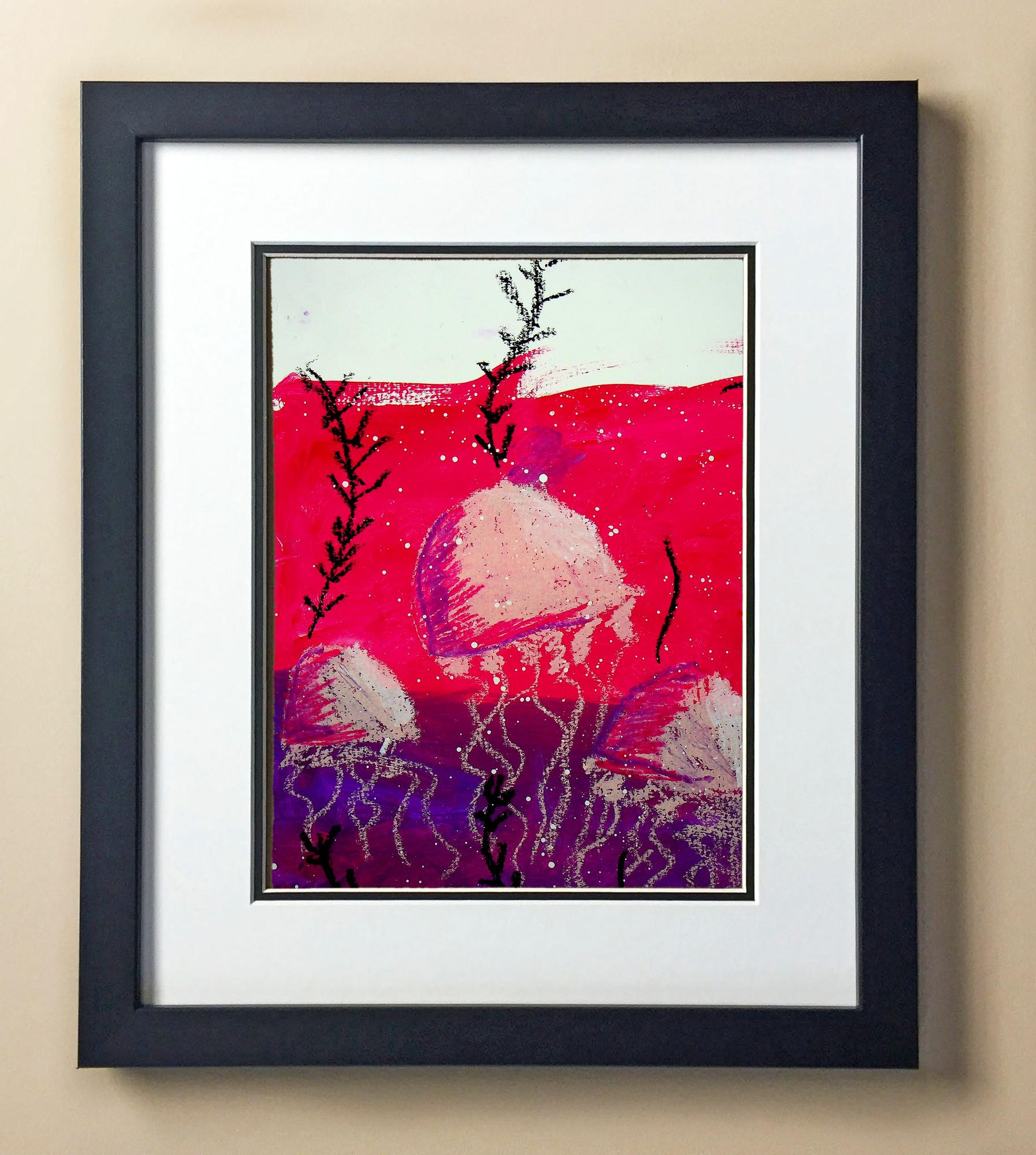 Included with the purchase is the Students Artwork, Frame, double matboard, shatter proof plexiglass, and a ready to hang backerboard with turnbuttons