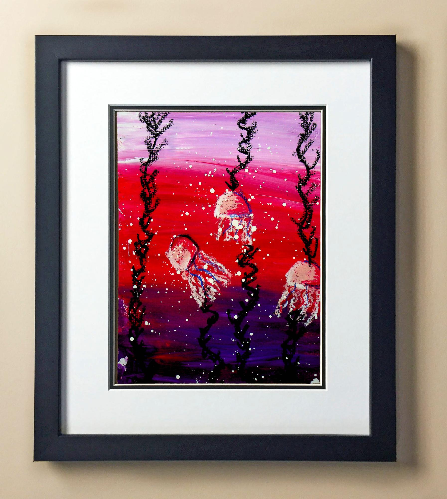 Included with the purchase is the Students Artwork, Frame, double matboard, shatter proof plexiglass, and a ready to hang backerboard with turnbuttons