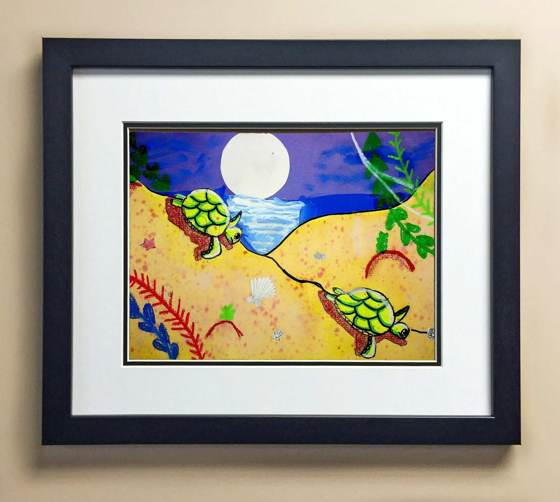 Included with the purchase is the Students Artwork, Frame, double matboard, shatter proof plexiglass, and a ready to hang backerboard with turnbuttons