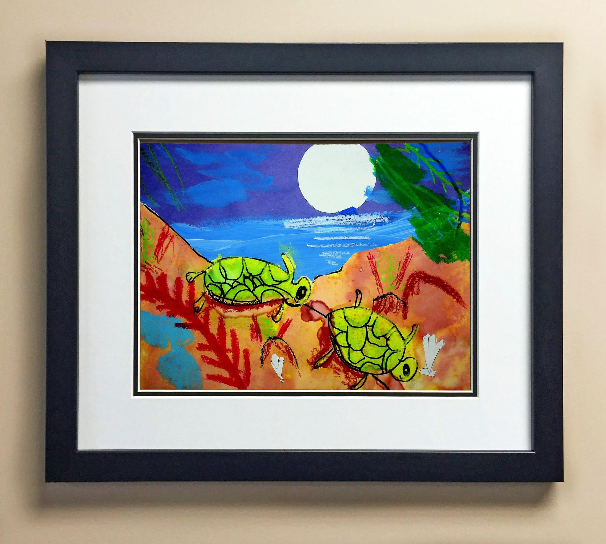 Included with the purchase is the Students Artwork, Frame, double matboard, shatter proof plexiglass, and a ready to hang backerboard with turnbuttons