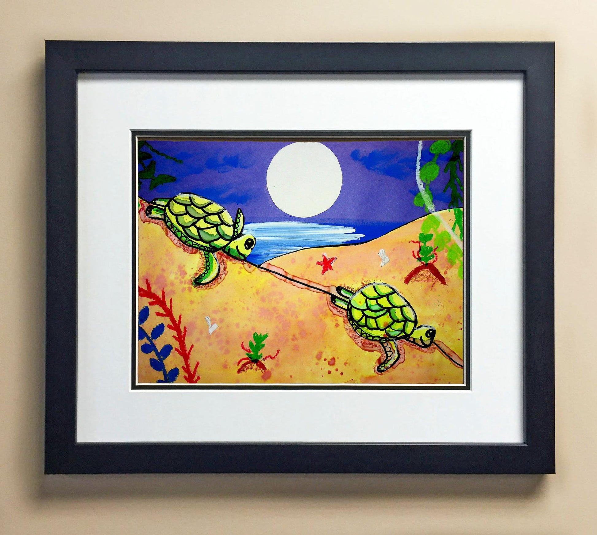 Included with the purchase is the Students Artwork, Frame, double matboard, shatter proof plexiglass, and a ready to hang backerboard with turnbuttons