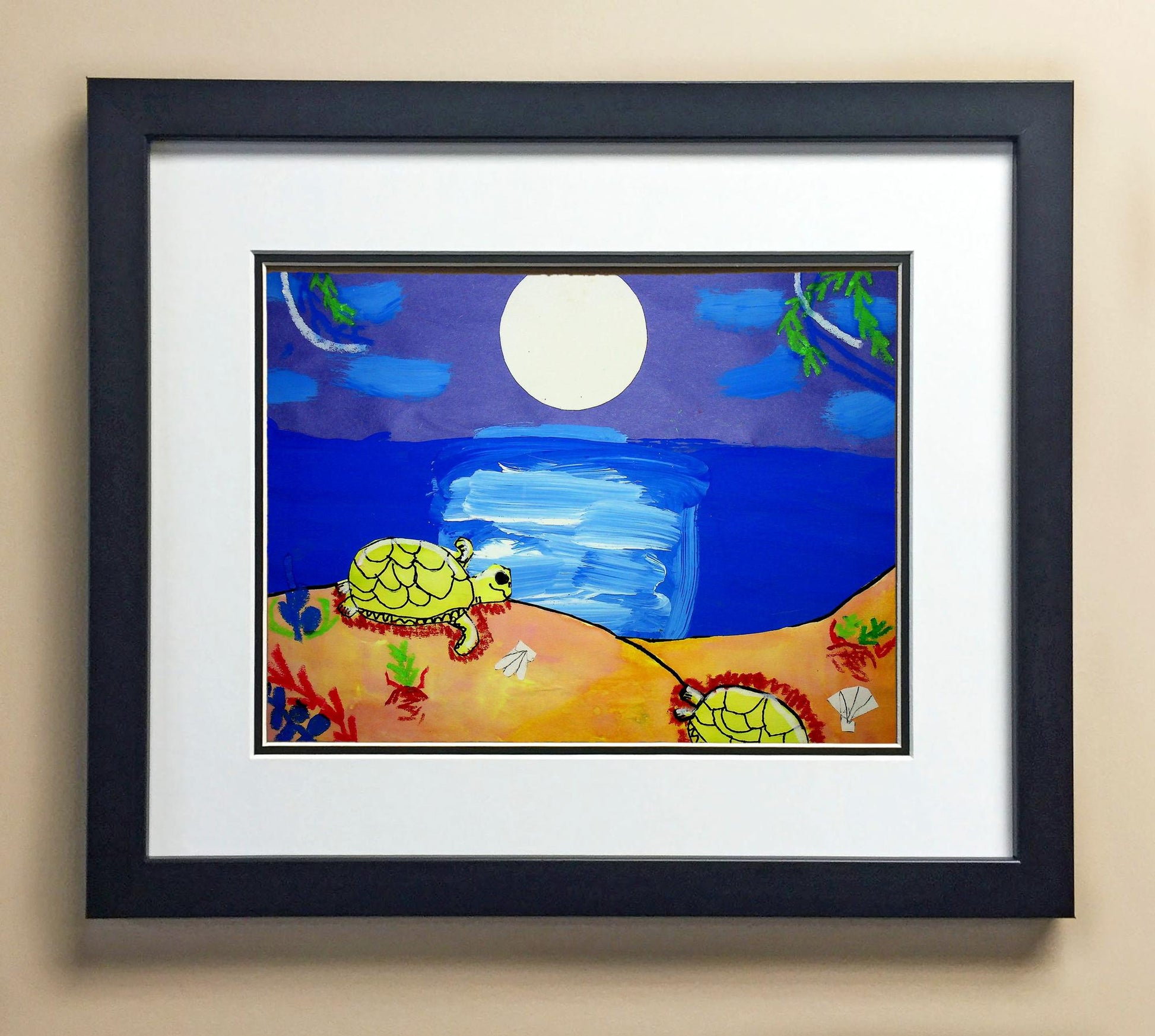 Included with the purchase is the Students Artwork, Frame, double matboard, shatter proof plexiglass, and a ready to hang backerboard with turnbuttons