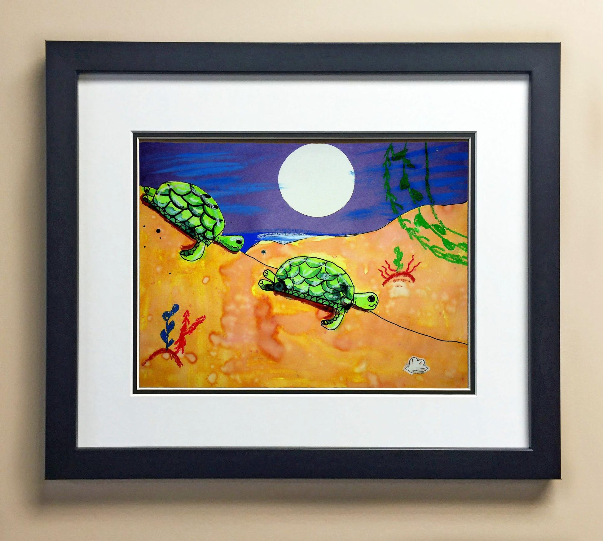 Included with the purchase is the Students Artwork, Frame, double matboard, shatter proof plexiglass, and a ready to hang backerboard with turnbuttons