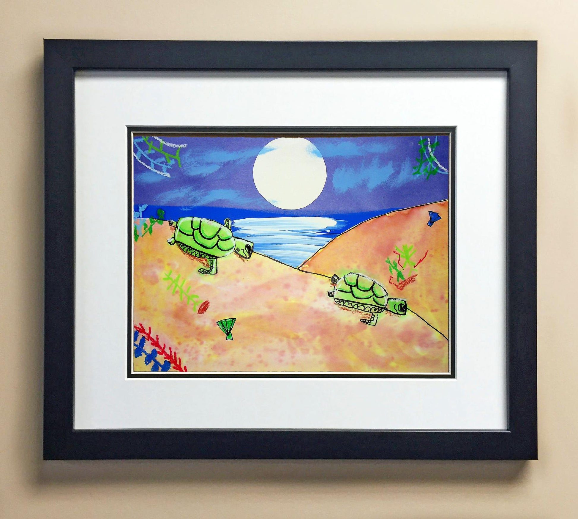 Included with the purchase is the Students Artwork, Frame, double matboard, shatter proof plexiglass, and a ready to hang backerboard with turnbuttons