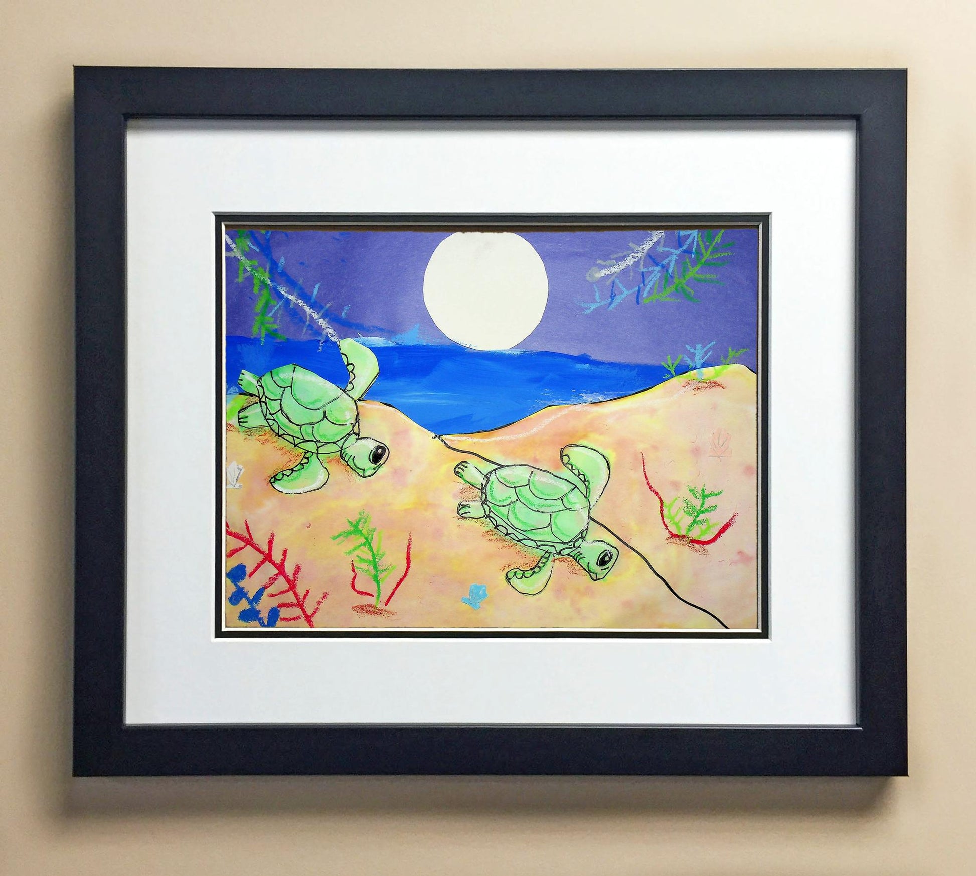 Included with the purchase is the Students Artwork, Frame, double matboard, shatter proof plexiglass, and a ready to hang backerboard with turnbuttons