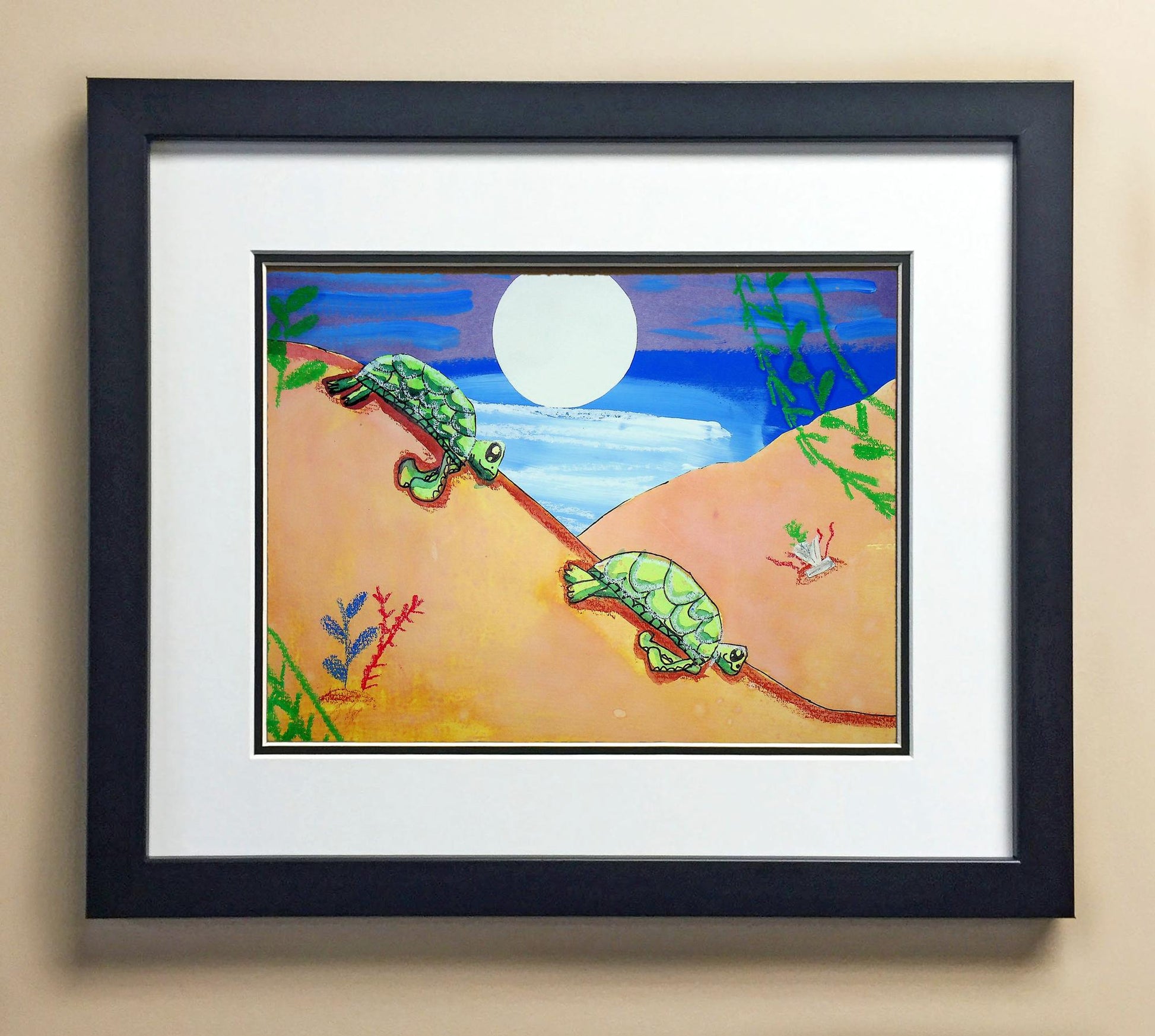 Included with the purchase is the Students Artwork, Frame, double matboard, shatter proof plexiglass, and a ready to hang backerboard with turnbuttons