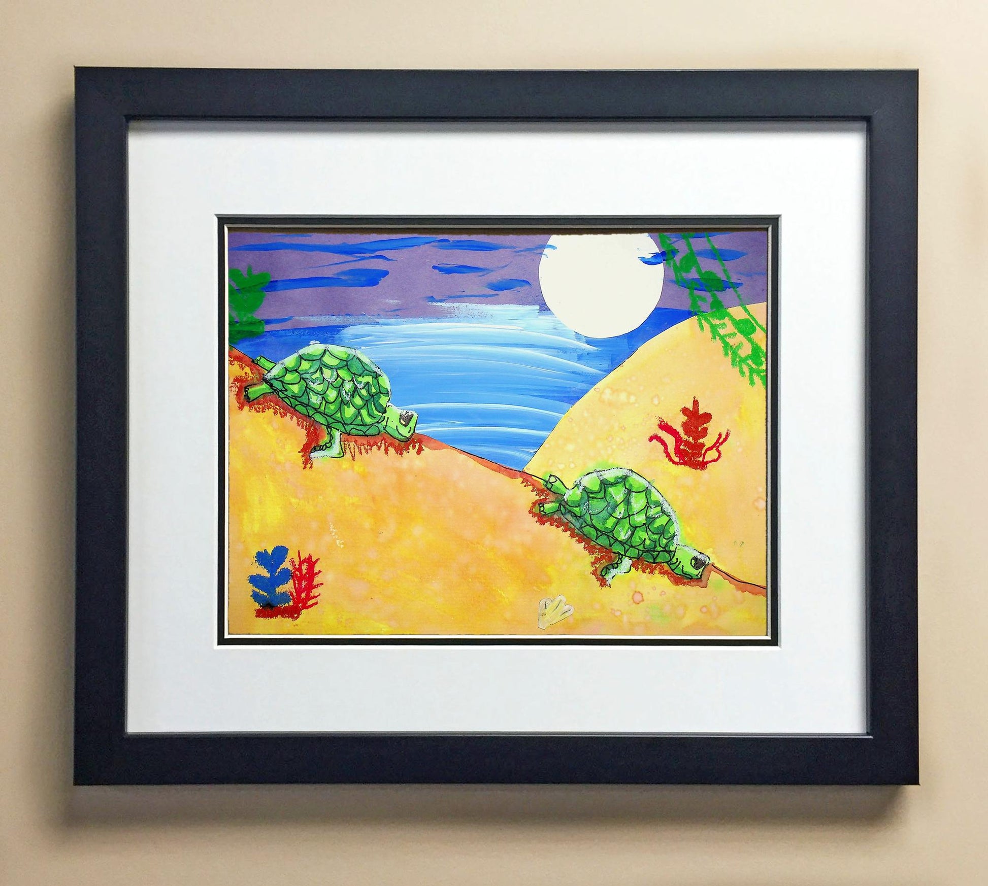 Included with the purchase is the Students Artwork, Frame, double matboard, shatter proof plexiglass, and a ready to hang backerboard with turnbuttons