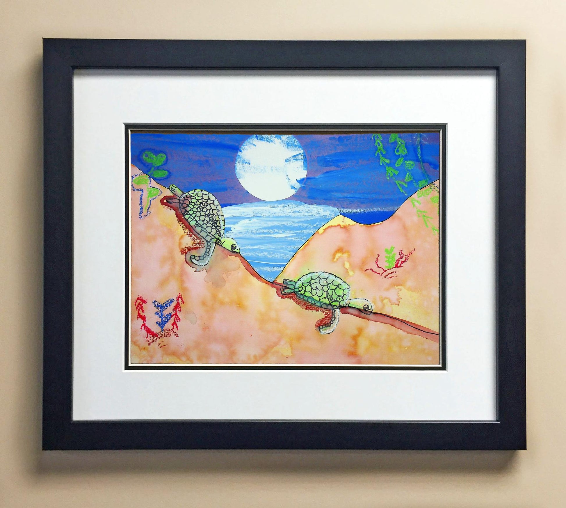 Included with the purchase is the Students Artwork, Frame, double matboard, shatter proof plexiglass, and a ready to hang backerboard with turnbuttons