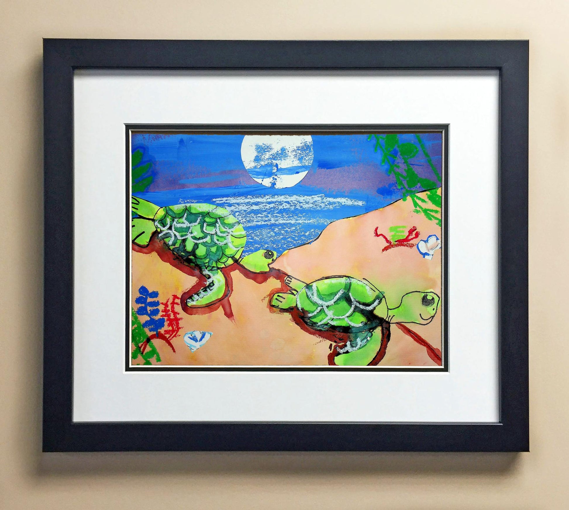 Included with the purchase is the Students Artwork, Frame, double matboard, shatter proof plexiglass, and a ready to hang backerboard with turnbuttons