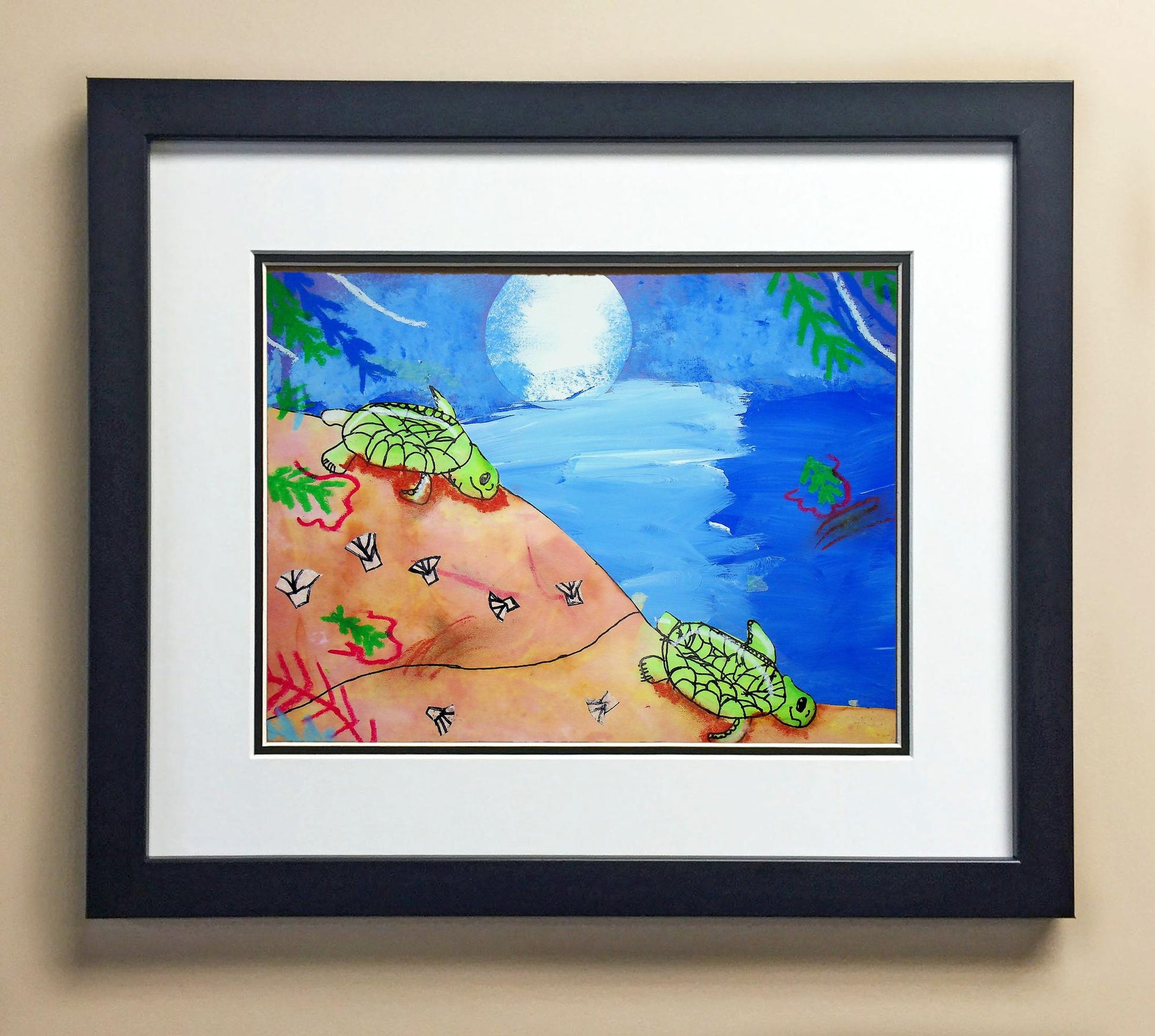 Included with the purchase is the Students Artwork, Frame, double matboard, shatter proof plexiglass, and a ready to hang backerboard with turnbuttons