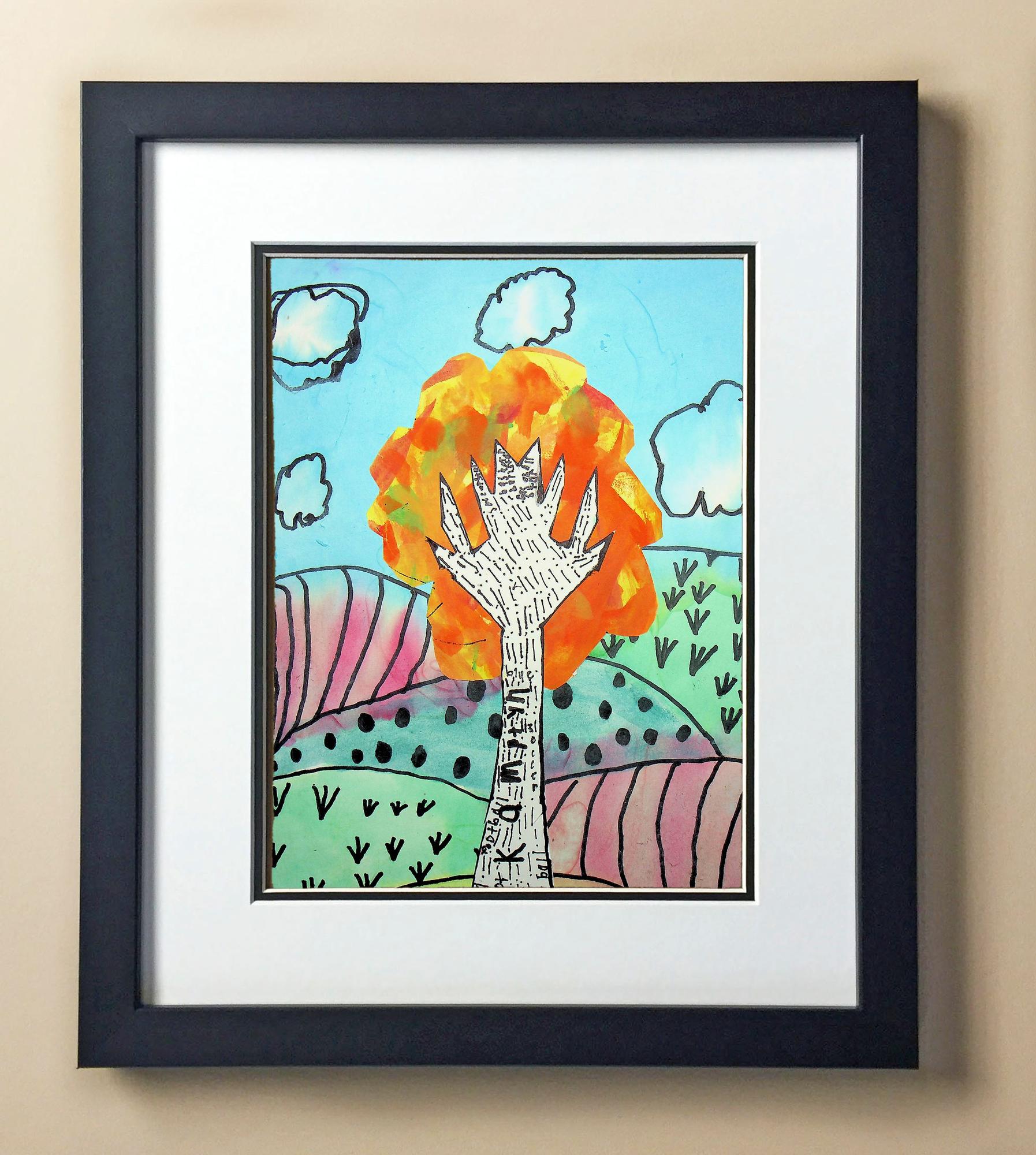 Included with the purchase is the Students Artwork, Frame, double matboard, shatter proof plexiglass, and a ready to hang backerboard with turnbuttons
