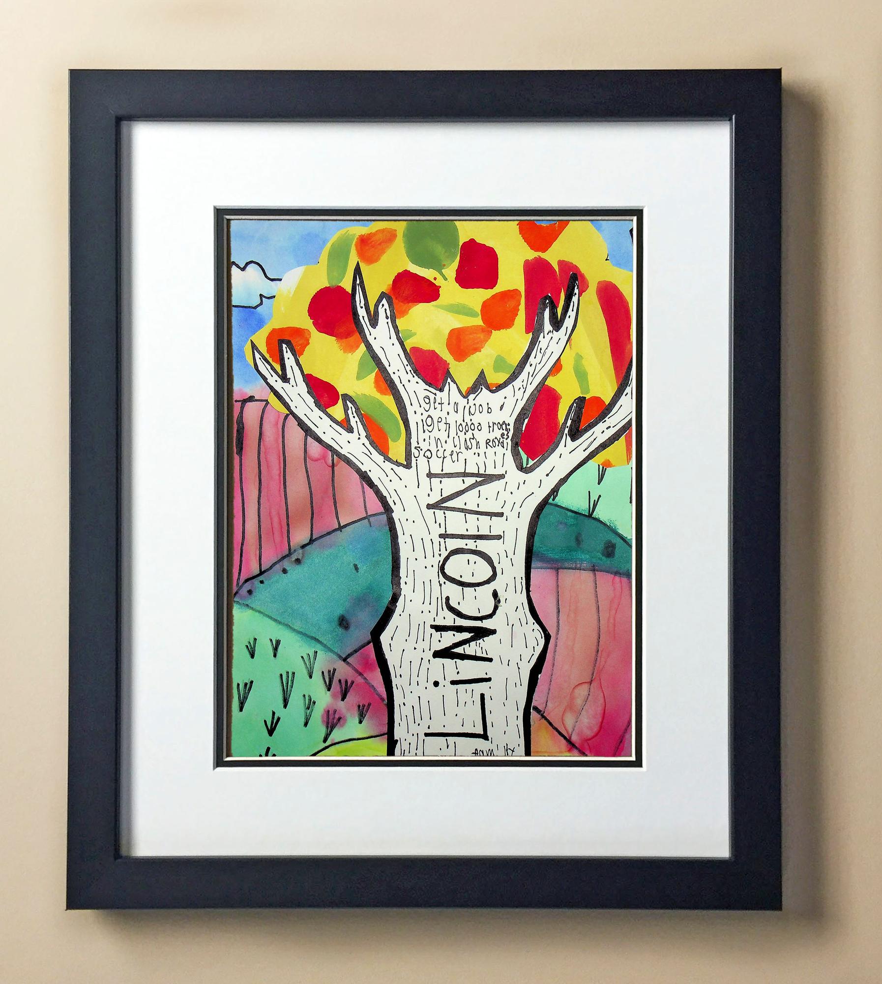 Included with the purchase is the Students Artwork, Frame, double matboard, shatter proof plexiglass, and a ready to hang backerboard with turnbuttons