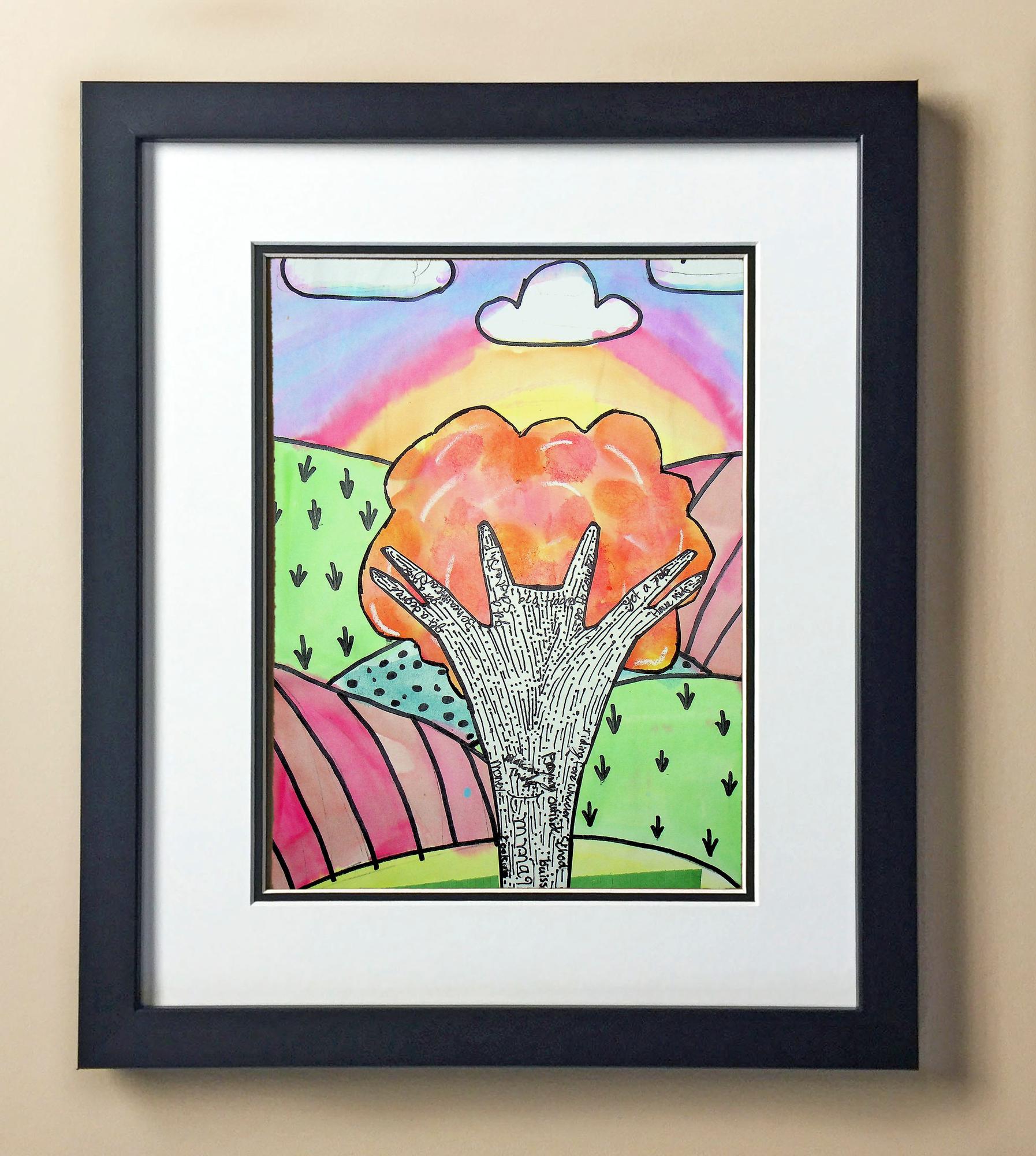 Included with the purchase is the Students Artwork, Frame, double matboard, shatter proof plexiglass, and a ready to hang backerboard with turnbuttons