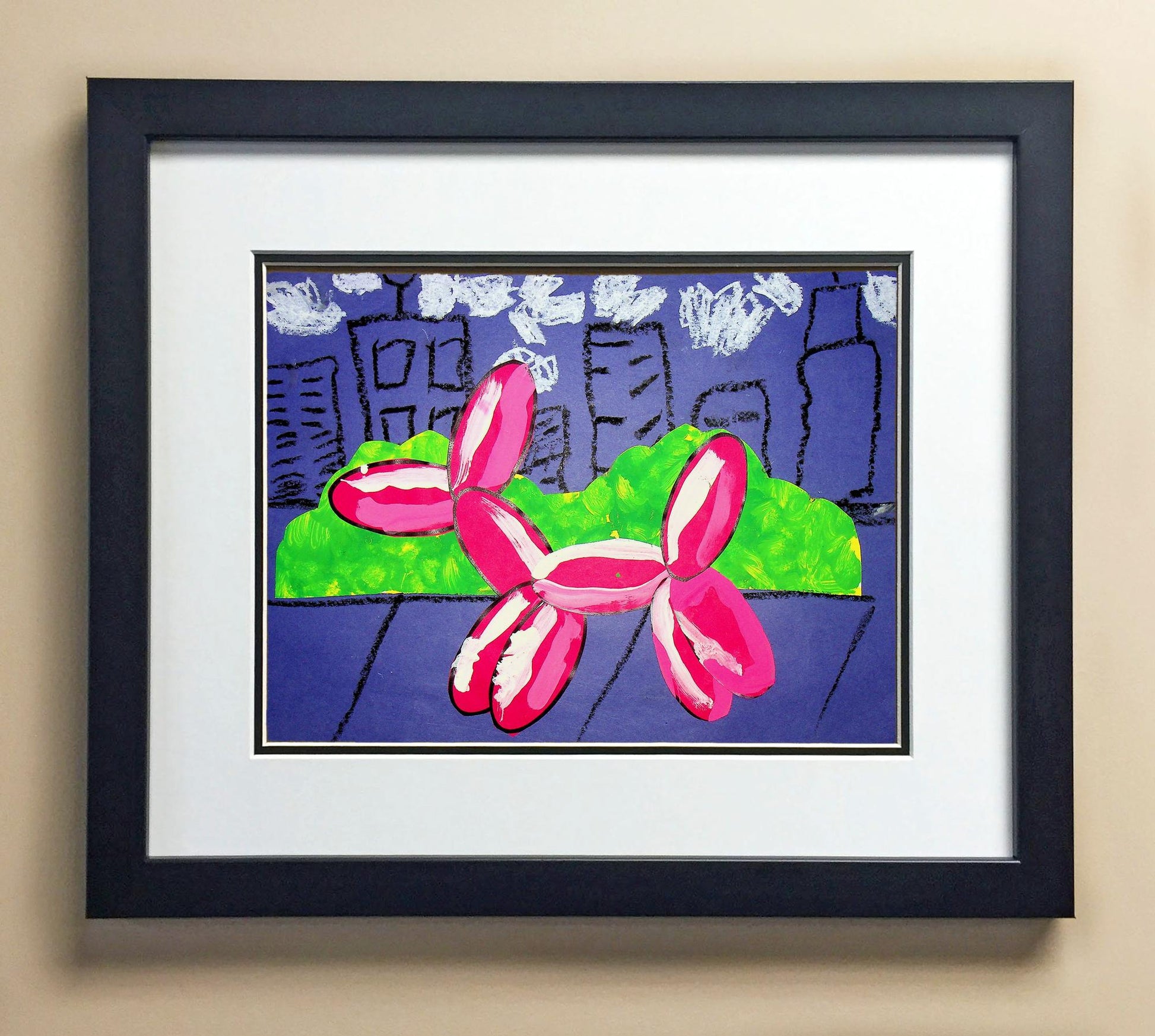 Included with the purchase is the Students Artwork, Frame, double matboard, shatter proof plexiglass, and a ready to hang backerboard with turnbuttons