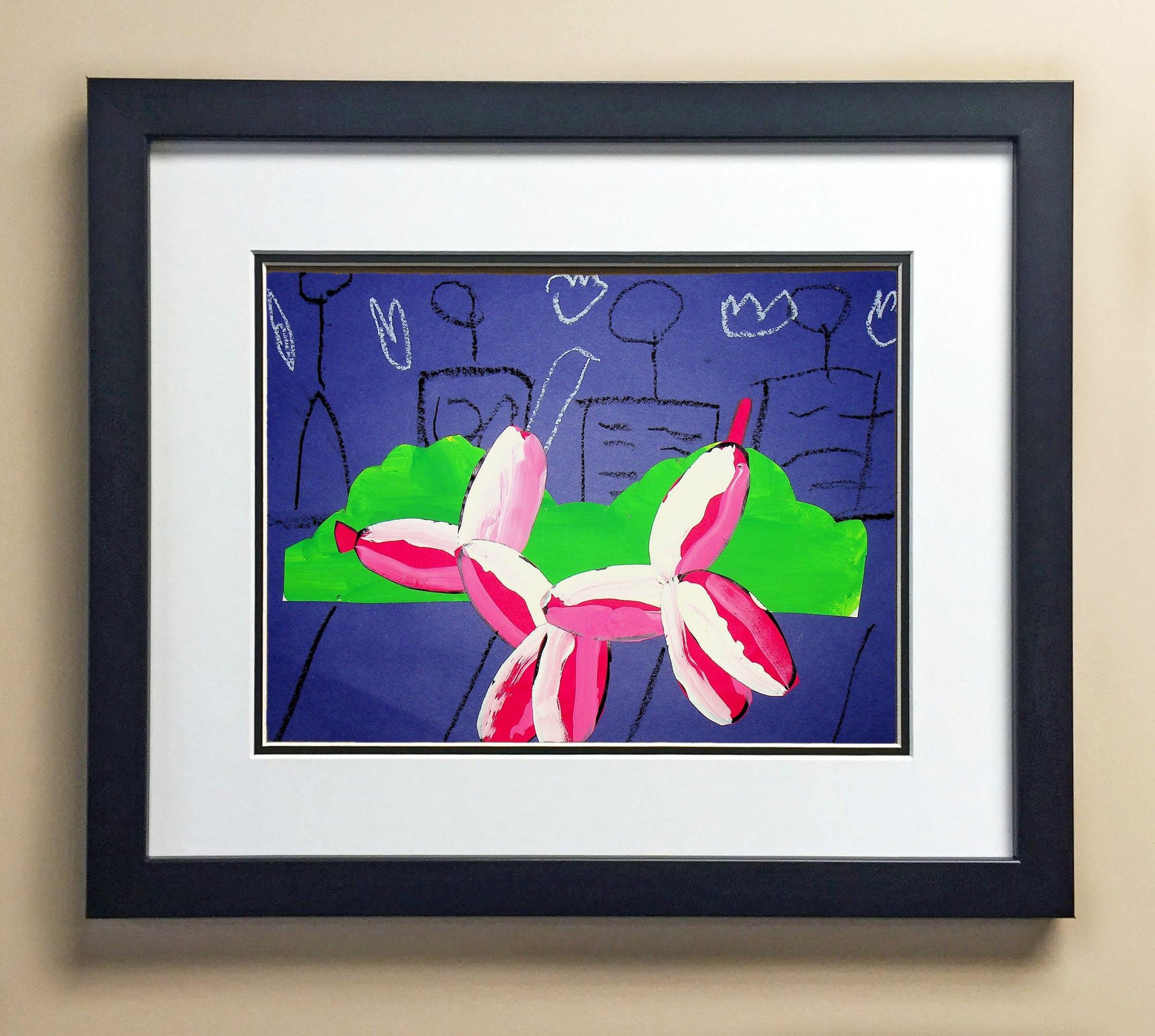 Included with the purchase is the Students Artwork, Frame, double matboard, shatter proof plexiglass, and a ready to hang backerboard with turnbuttons