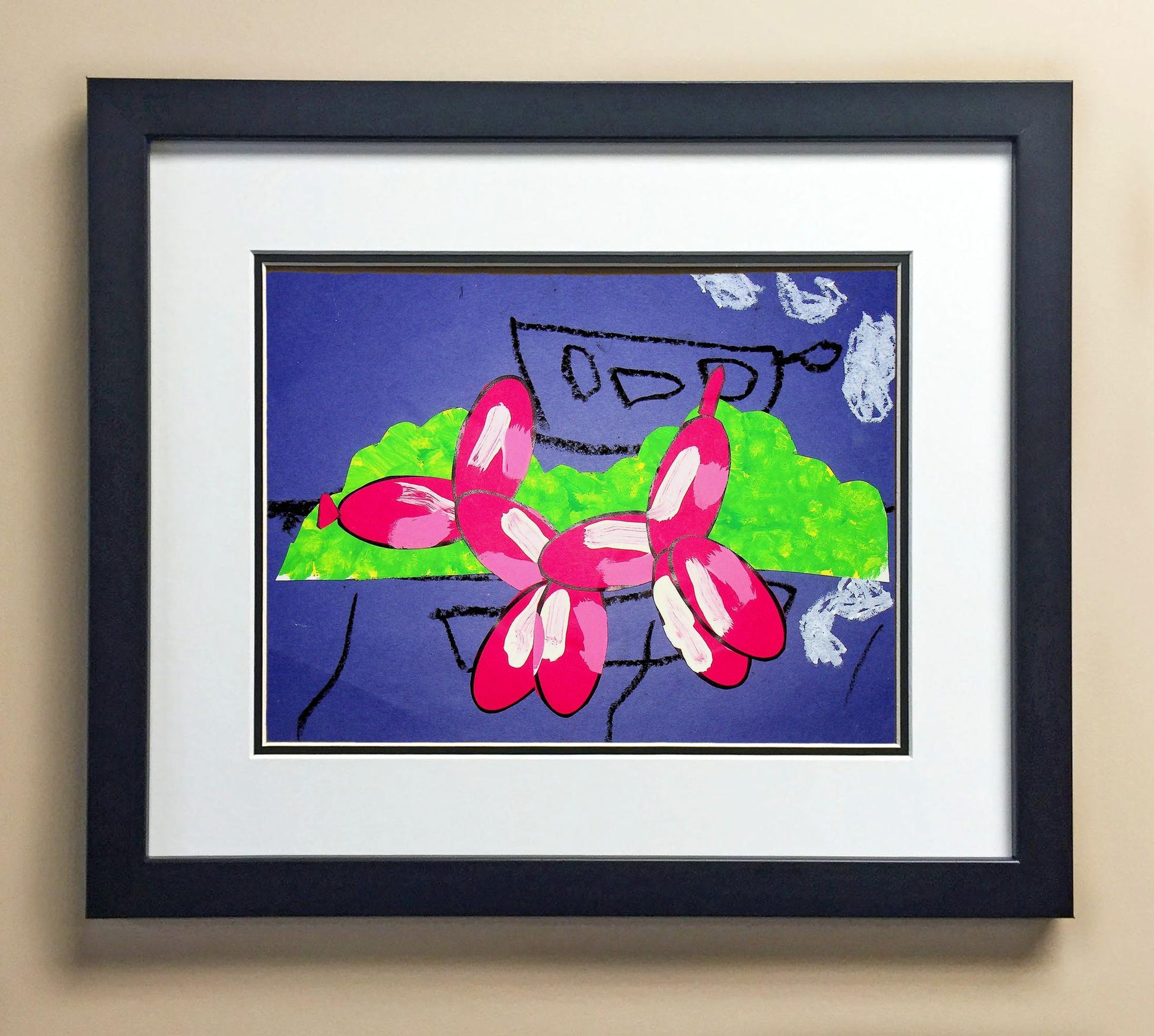 Included with the purchase is the Students Artwork, Frame, double matboard, shatter proof plexiglass, and a ready to hang backerboard with turnbuttons