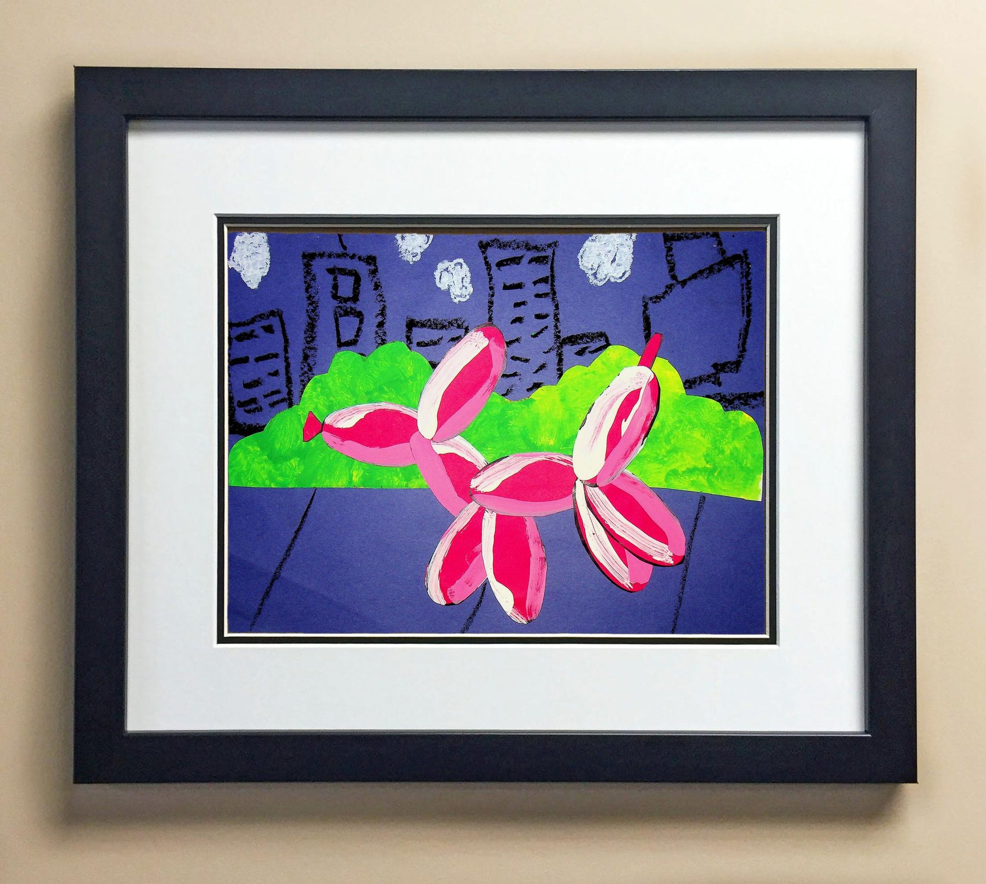 Included with the purchase is the Students Artwork, Frame, double matboard, shatter proof plexiglass, and a ready to hang backerboard with turnbuttons
