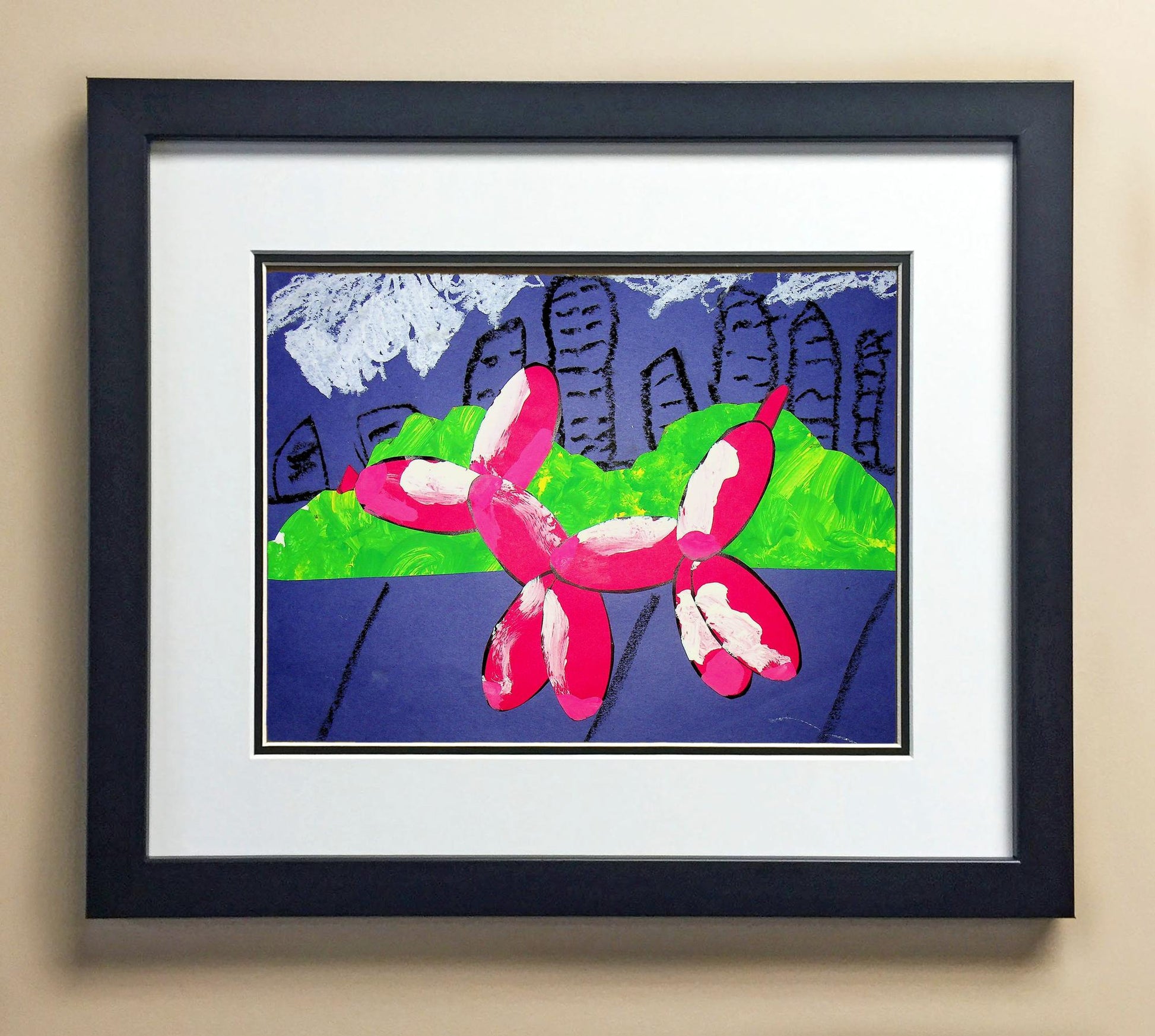 Included with the purchase is the Students Artwork, Frame, double matboard, shatter proof plexiglass, and a ready to hang backerboard with turnbuttons