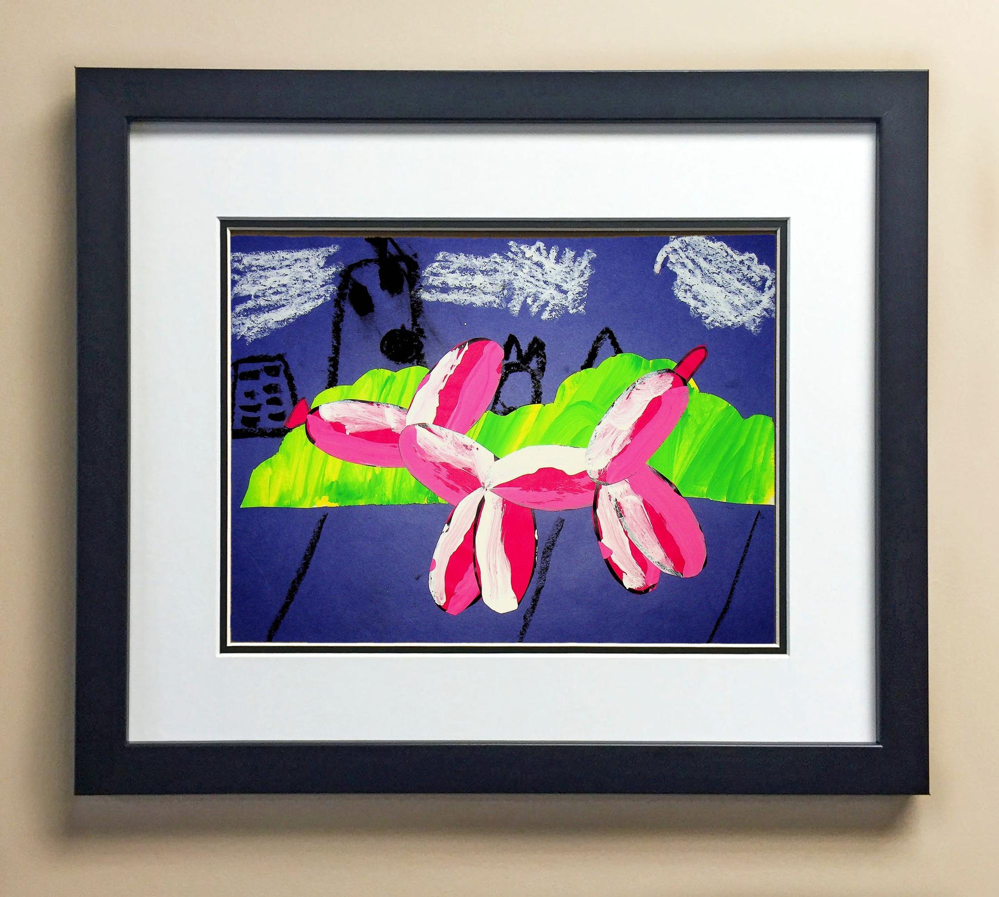 Included with the purchase is the Students Artwork, Frame, double matboard, shatter proof plexiglass, and a ready to hang backerboard with turnbuttons