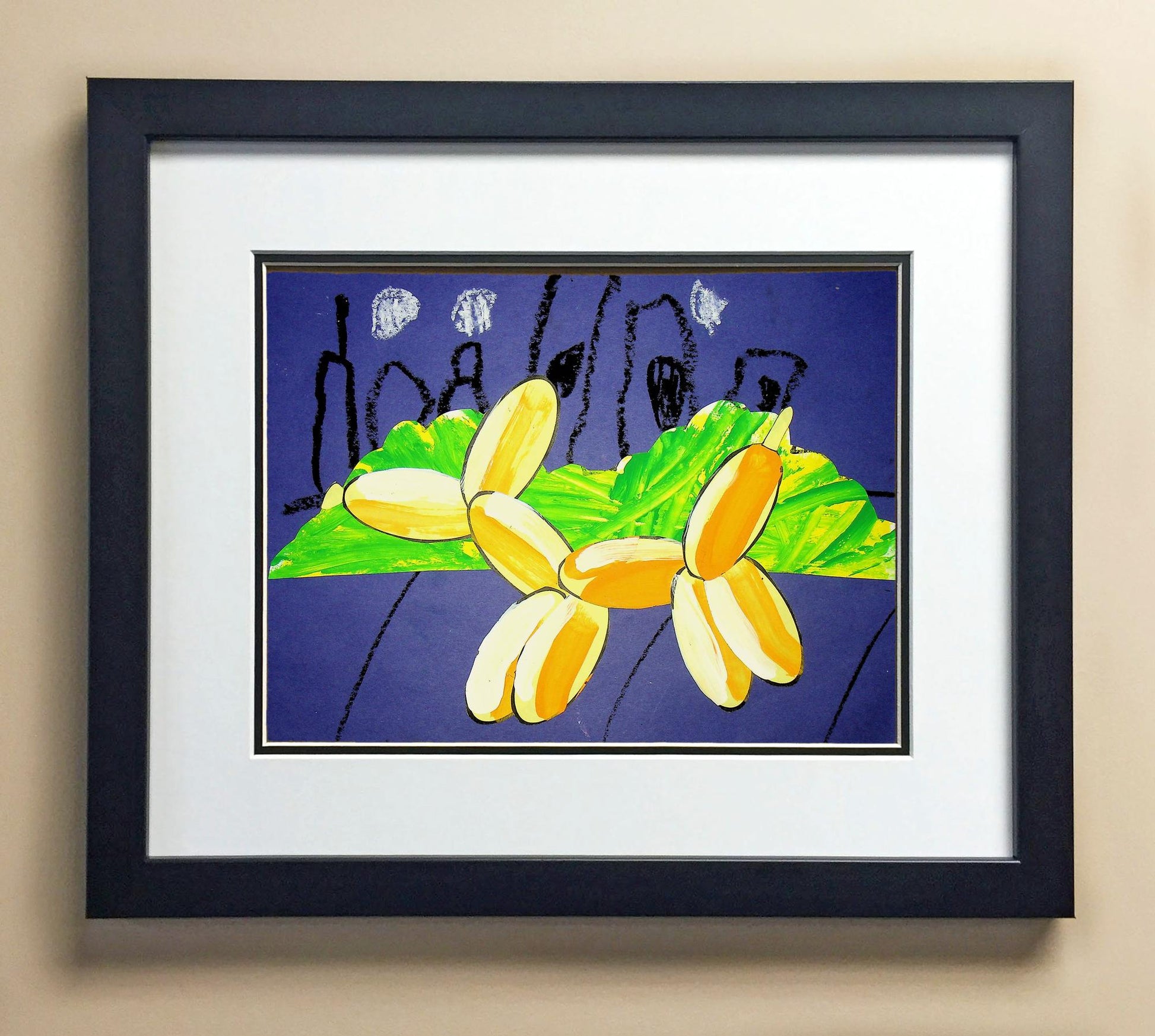 Included with the purchase is the Students Artwork, Frame, double matboard, shatter proof plexiglass, and a ready to hang backerboard with turnbuttons