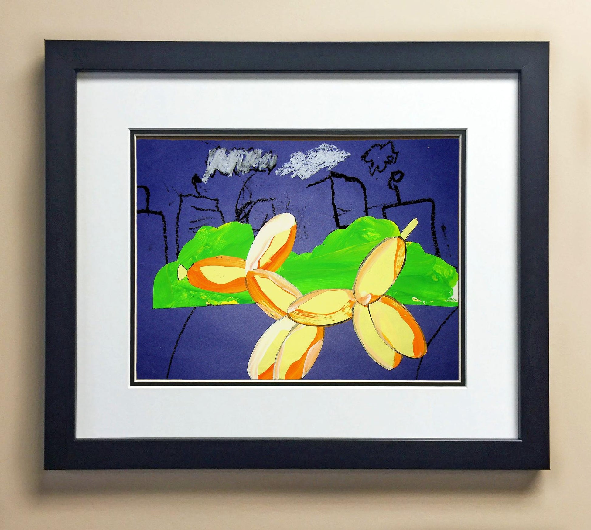 Included with the purchase is the Students Artwork, Frame, double matboard, shatter proof plexiglass, and a ready to hang backerboard with turnbuttons