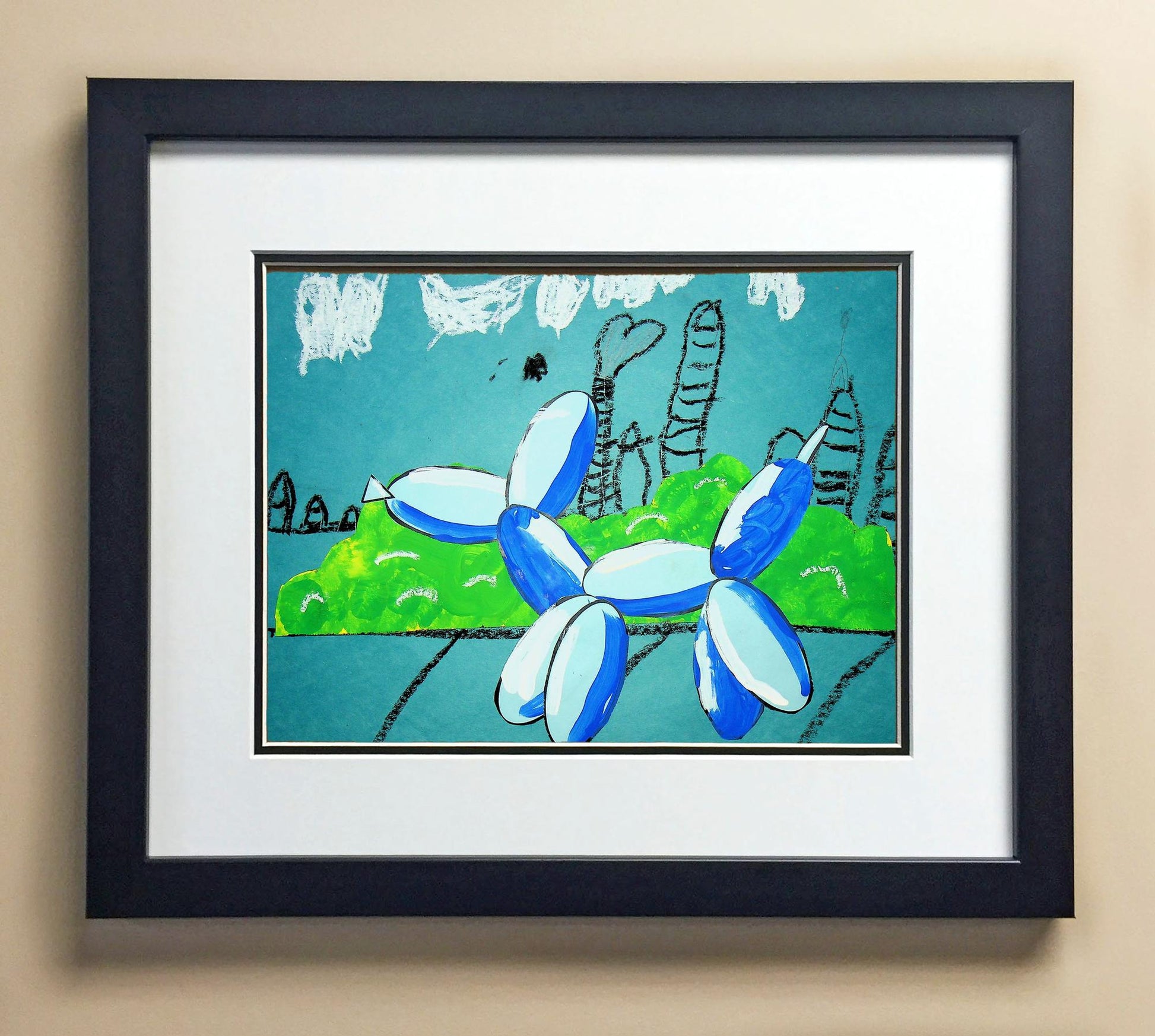 Included with the purchase is the Students Artwork, Frame, double matboard, shatter proof plexiglass, and a ready to hang backerboard with turnbuttons