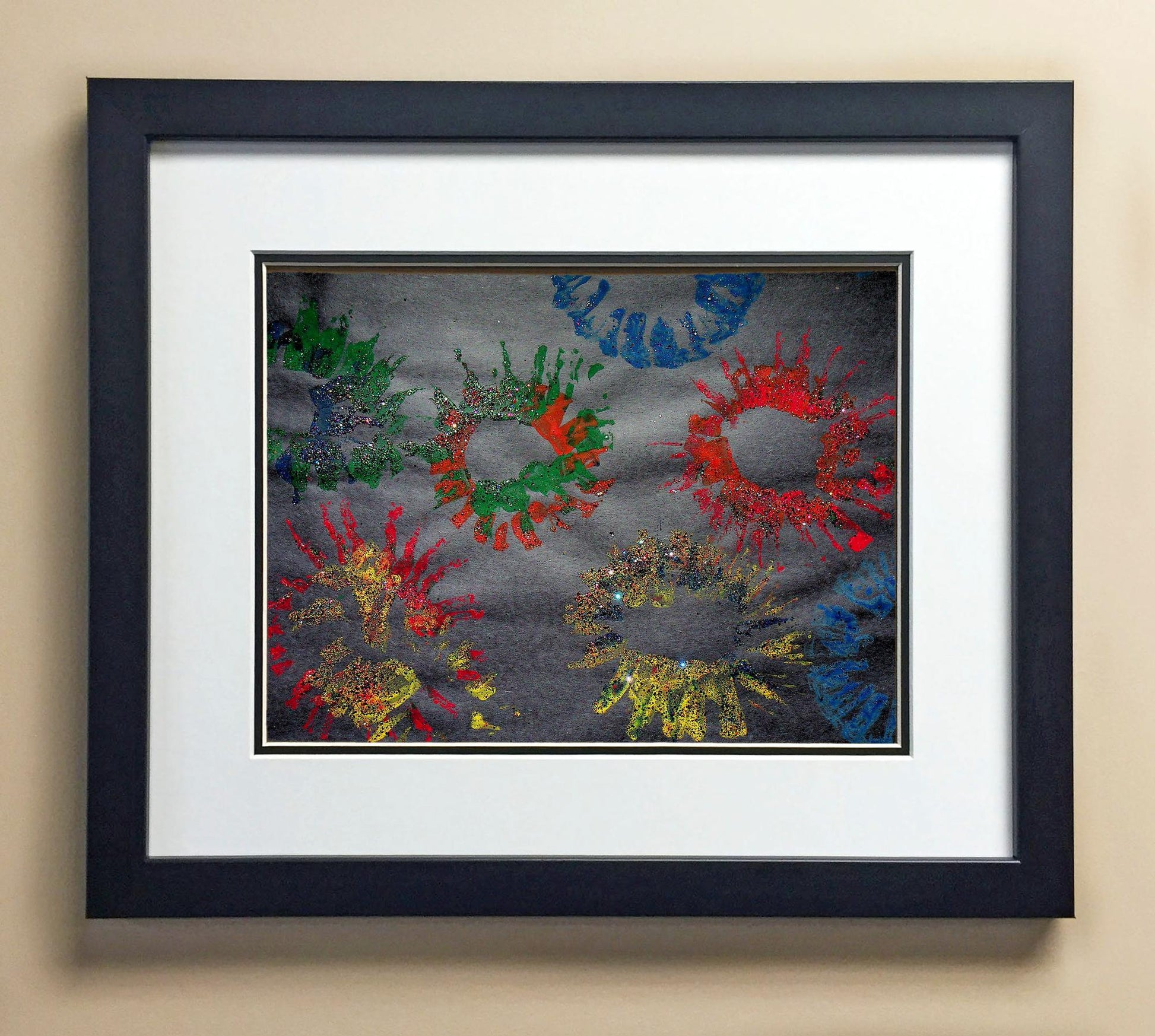 Included with the purchase is the Students Artwork, Frame, double matboard, shatter proof plexiglass, and a ready to hang backerboard with turnbuttons