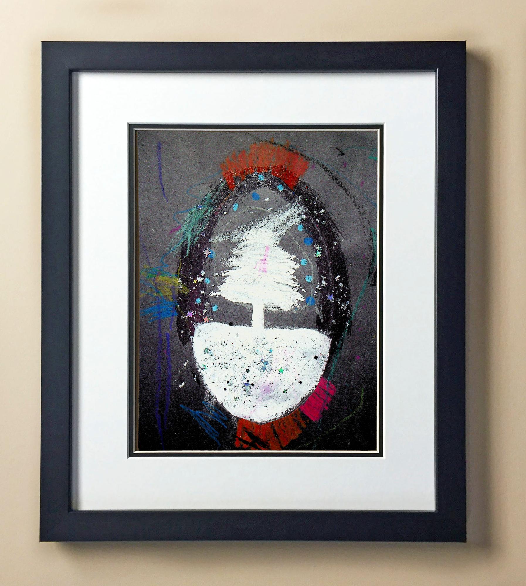 Included with the purchase is the Students Artwork, Frame, double matboard, shatter proof plexiglass, and a ready to hang backerboard with turnbuttons