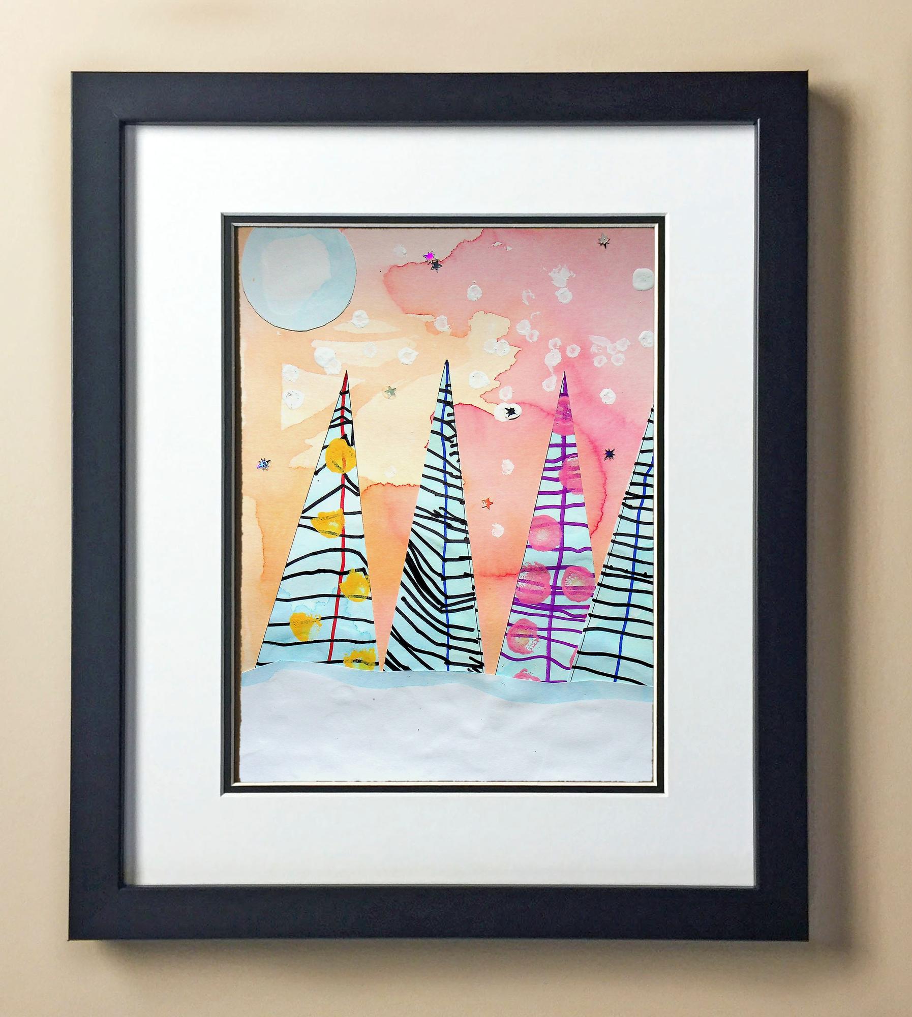 Included with the purchase is the Students Artwork, Frame, double matboard, shatter proof plexiglass, and a ready to hang backerboard with turnbuttons