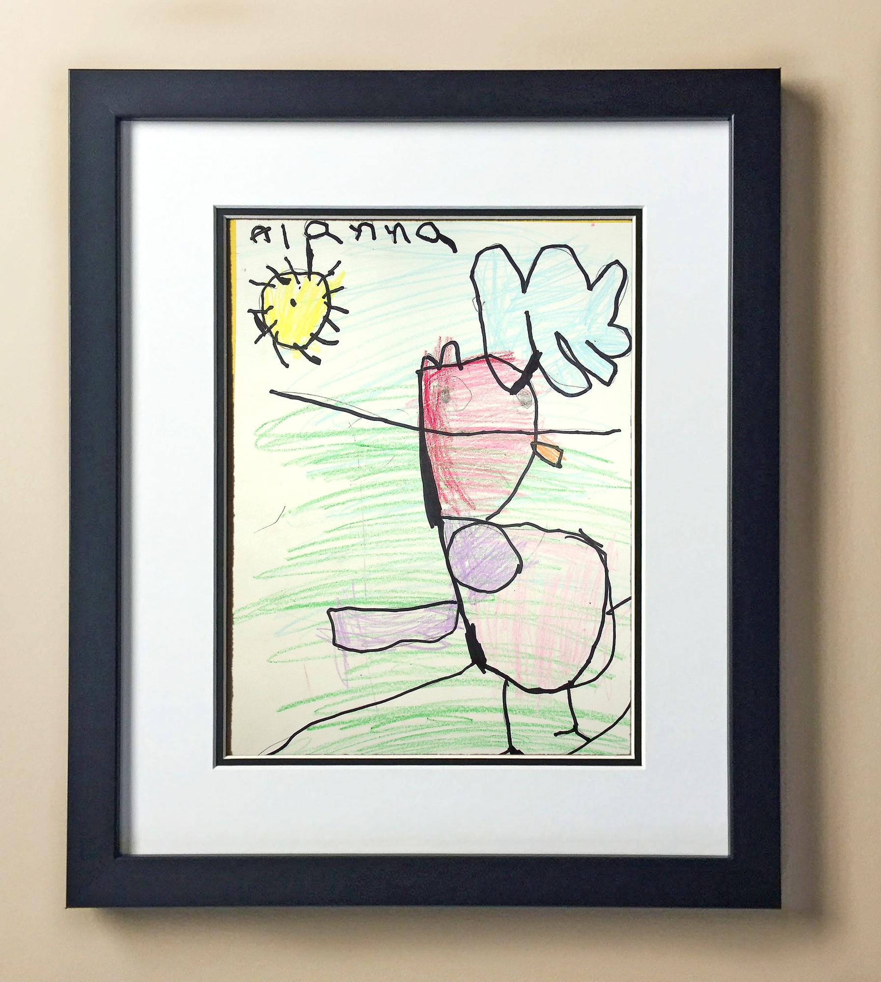 Included with the purchase is the Students Artwork, Frame, double matboard, shatter proof plexiglass, and a ready to hang backerboard with turnbuttons