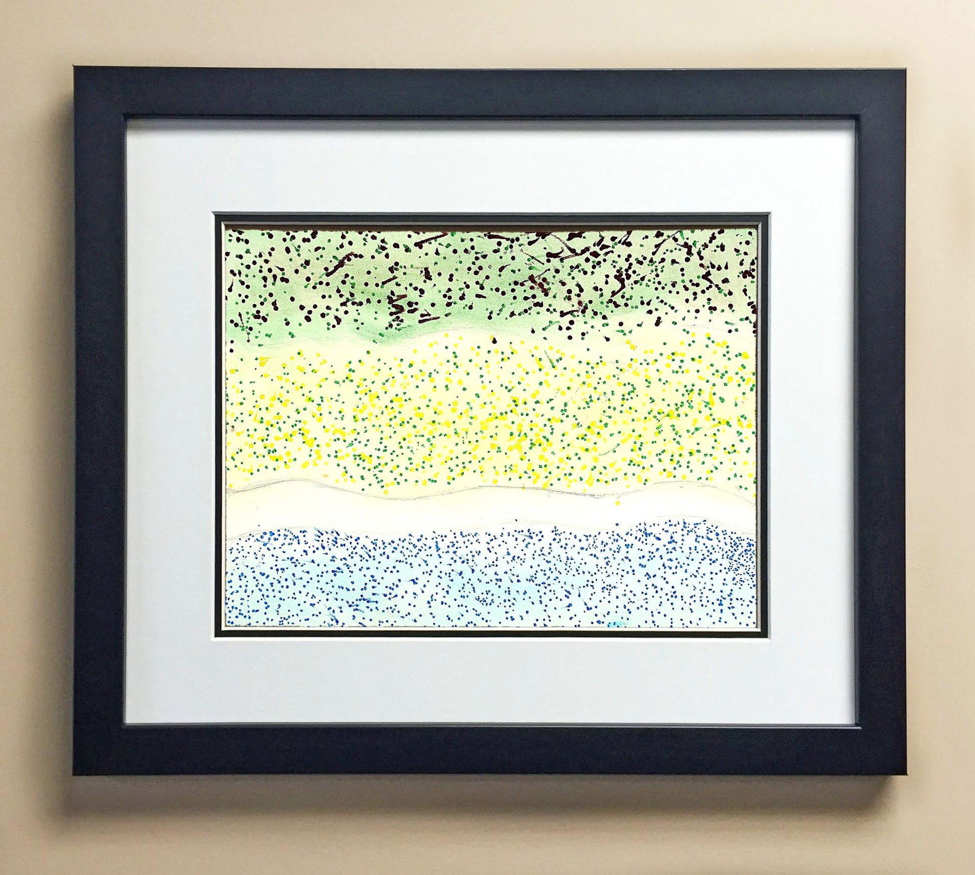 Included with the purchase is the Students Artwork, Frame, double matboard, shatter proof plexiglass, and a ready to hang backerboard with turnbuttons