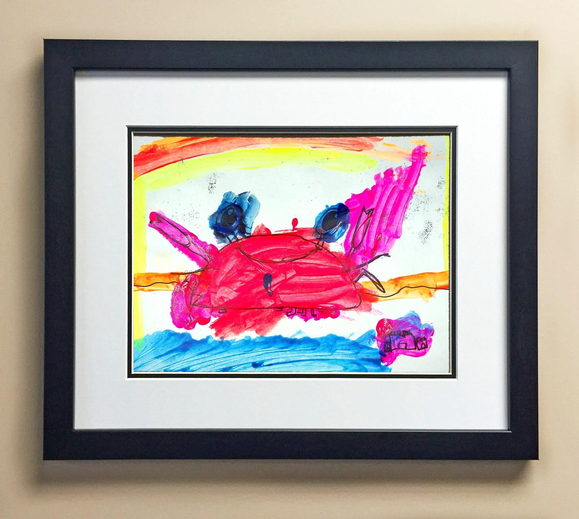 Included with the purchase is the Students Artwork, Frame, double matboard, shatter proof plexiglass, and a ready to hang backerboard with turnbuttons