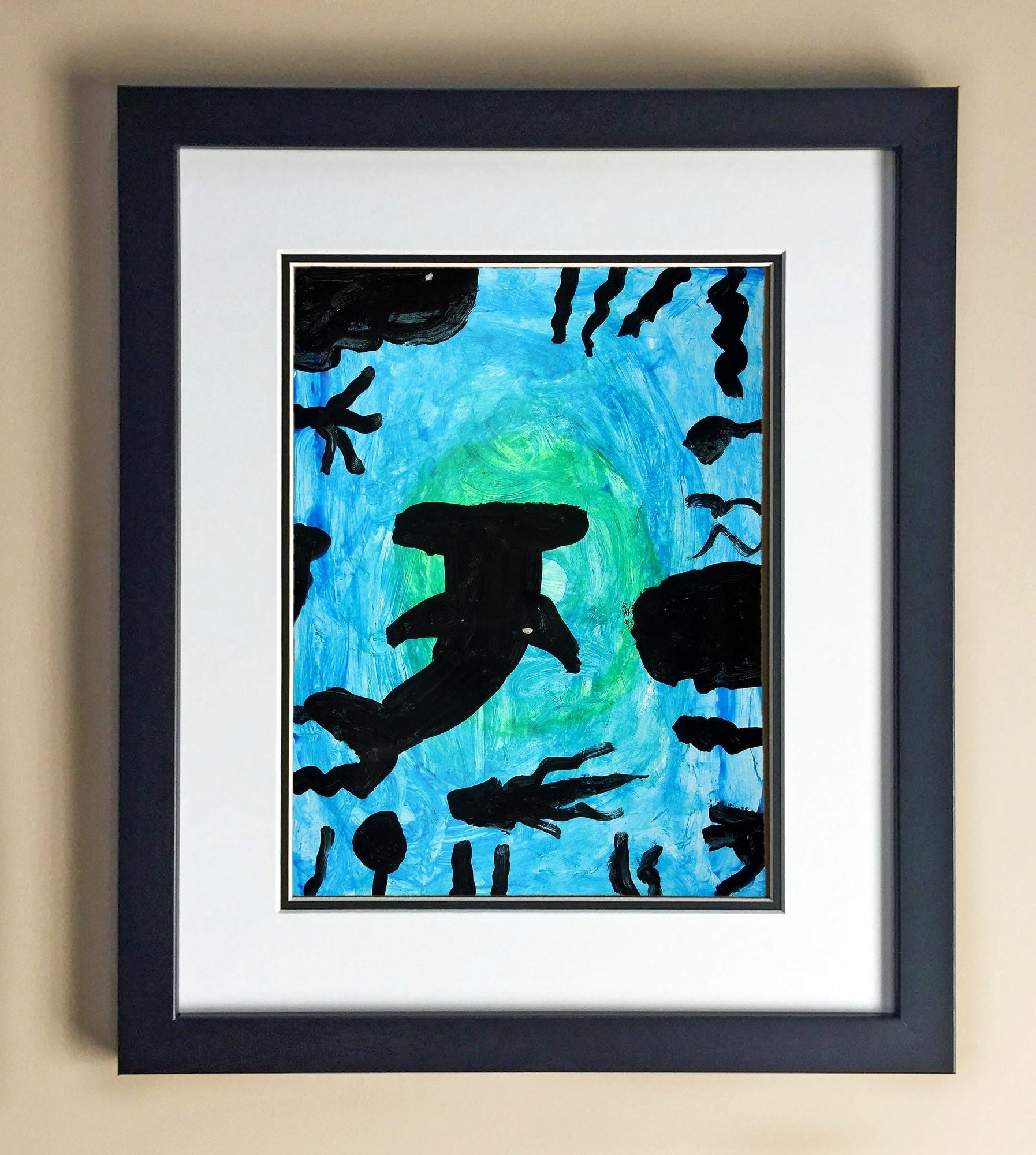 Included with the purchase is the Students Artwork, Frame, double matboard, shatter proof plexiglass, and a ready to hang backerboard with turnbuttons