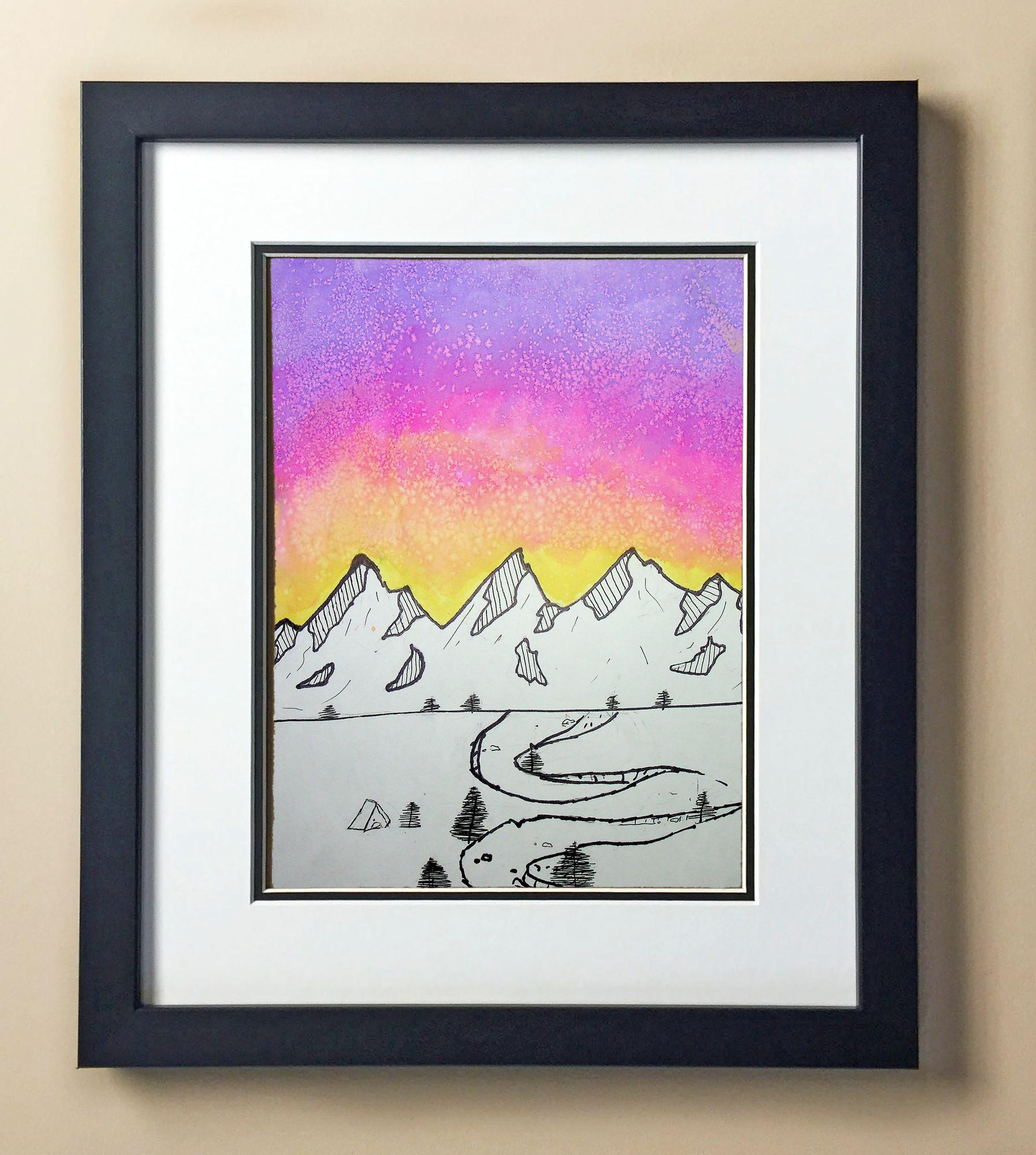 Included with the purchase is the Students Artwork, Frame, double matboard, shatter proof plexiglass, and a ready to hang backerboard with turnbuttons