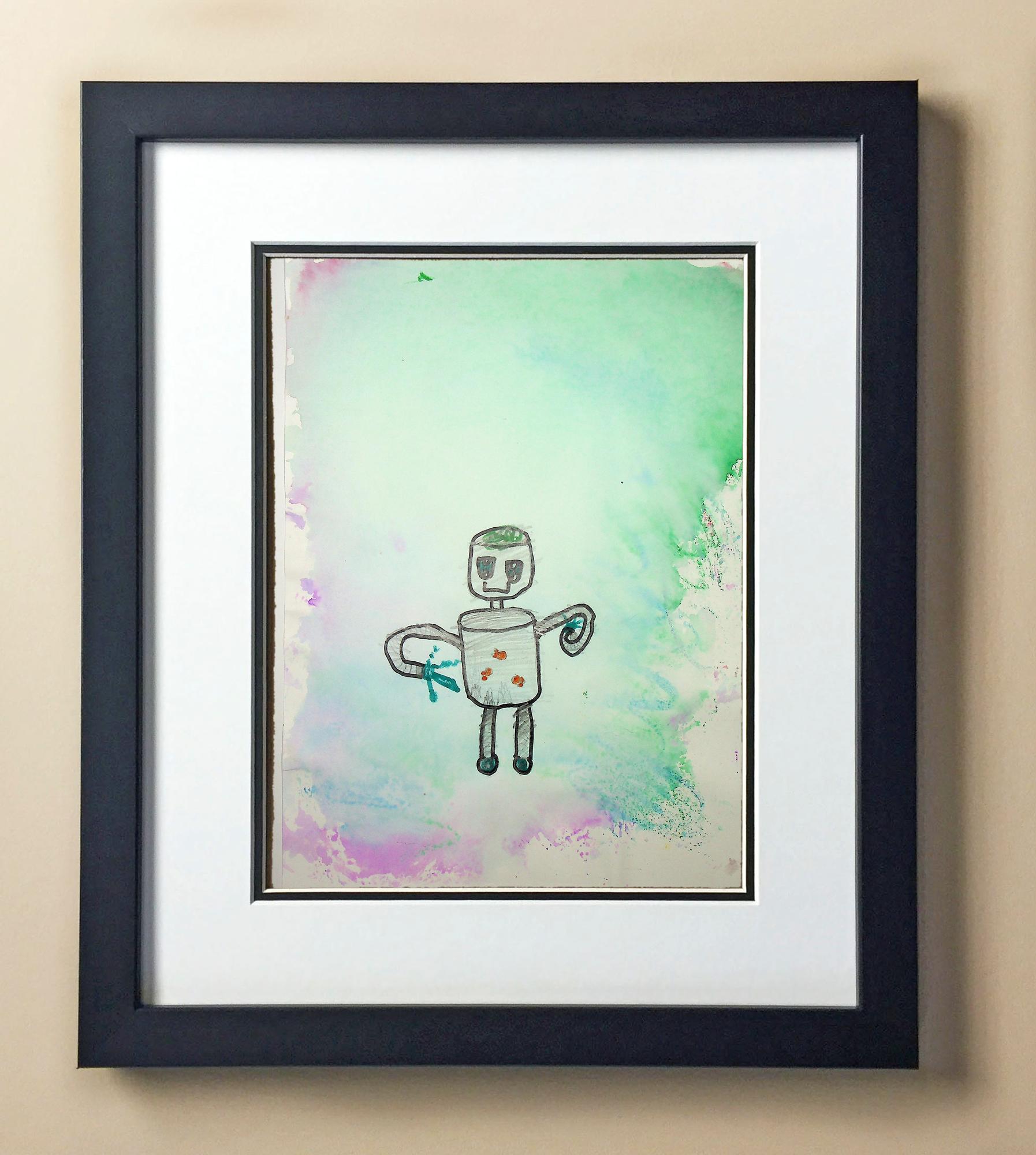 Included with the purchase is the Students Artwork, Frame, double matboard, shatter proof plexiglass, and a ready to hang backerboard with turnbuttons
