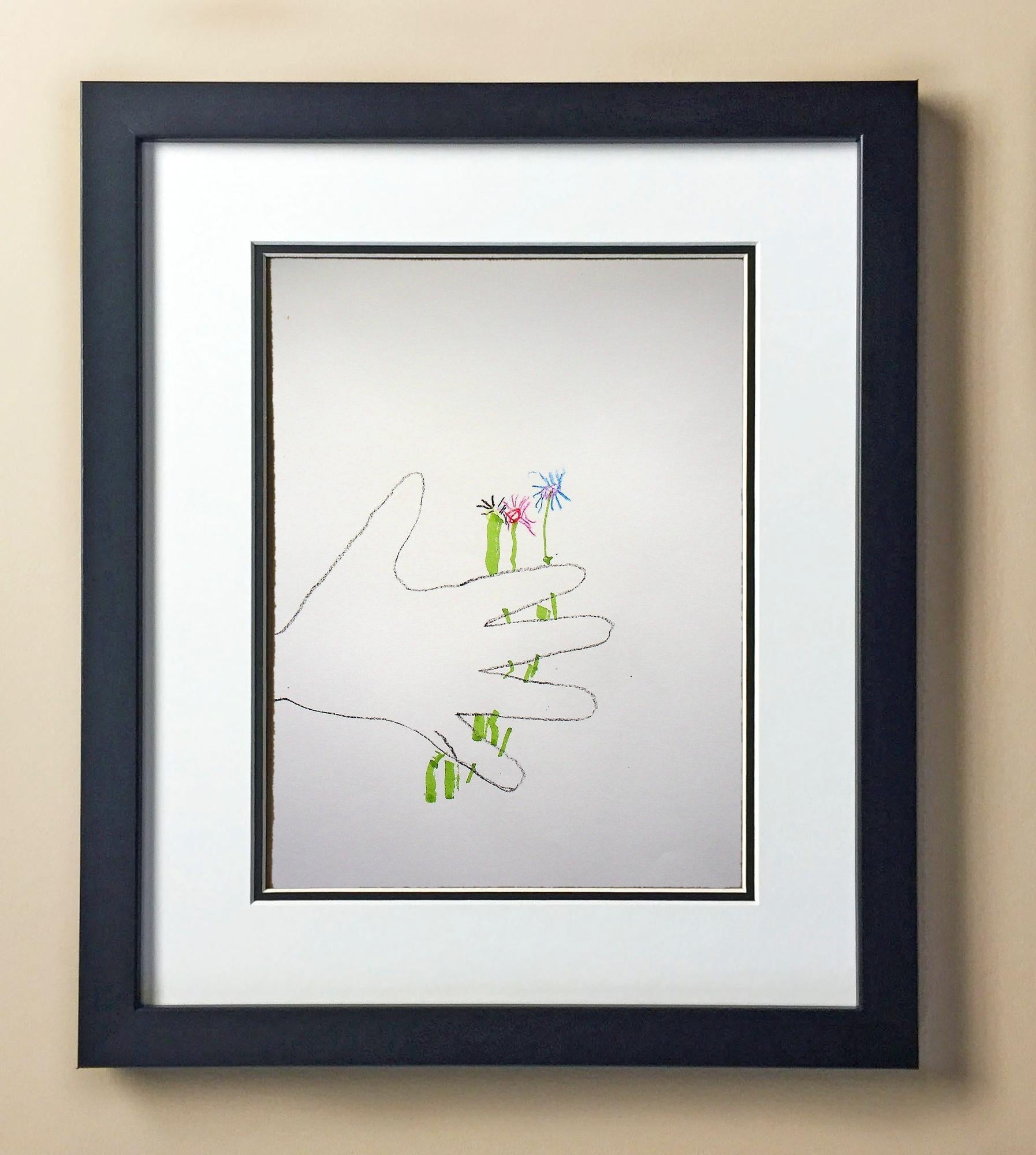 Included with the purchase is the Students Artwork, Frame, double matboard, shatter proof plexiglass, and a ready to hang backerboard with turnbuttons
